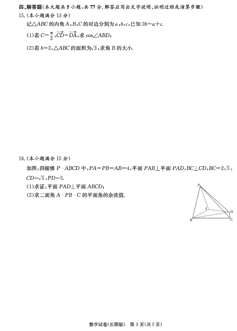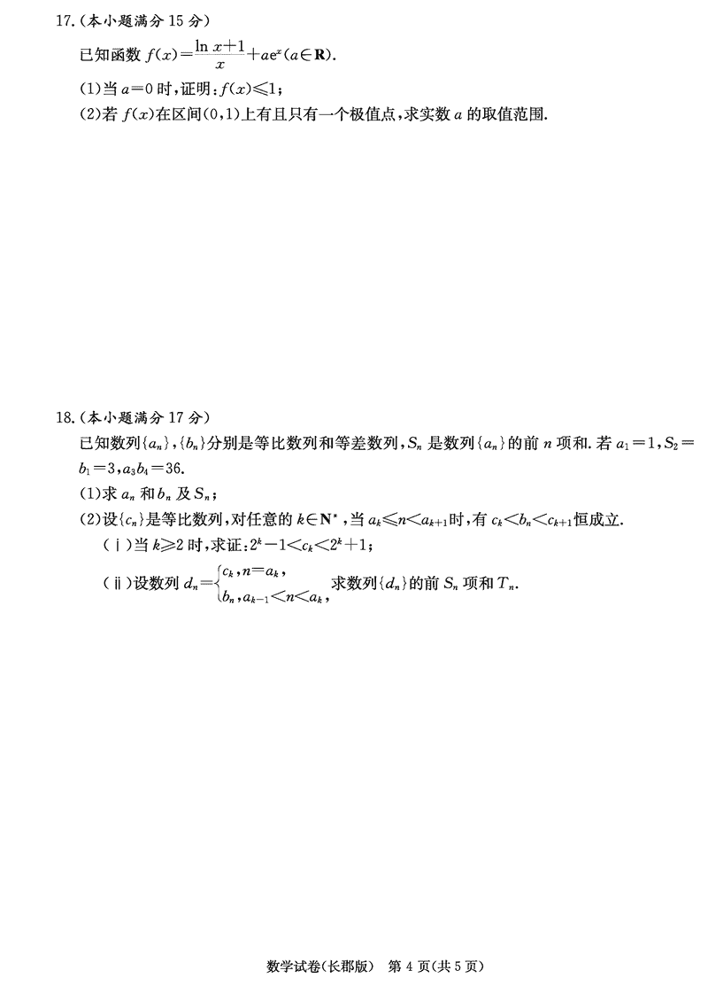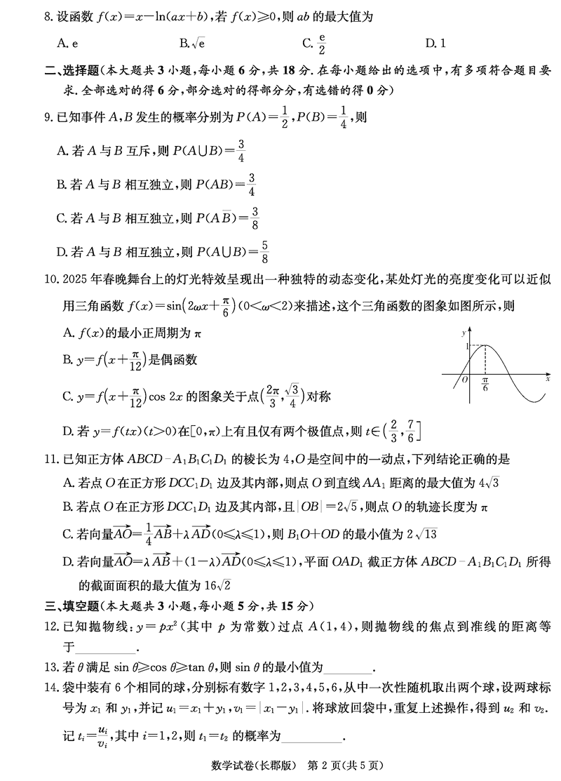湖南长郡中学2025届高三月考试卷(七)数学试题及答案
