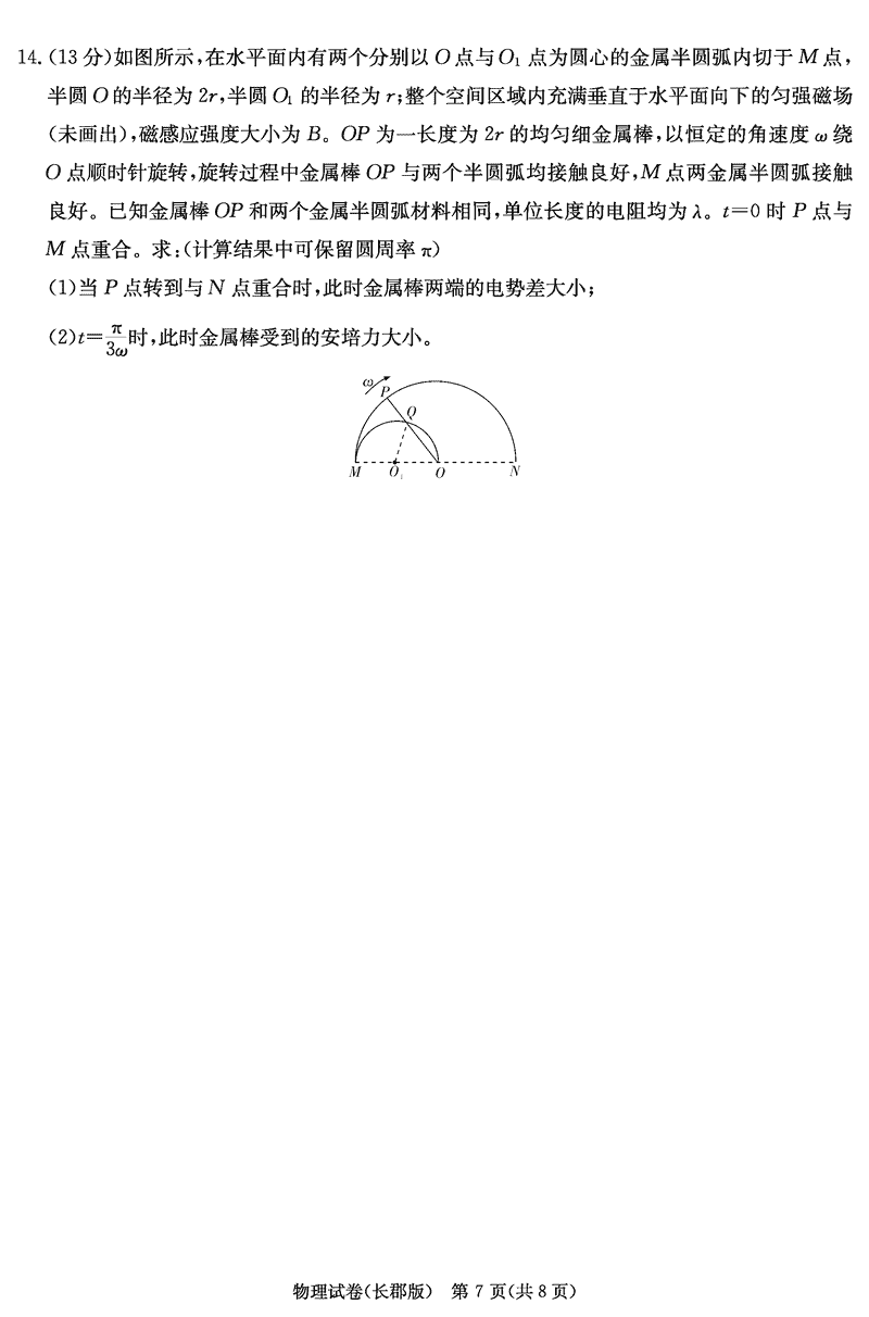 湖南长郡中学2025届高三月考试卷(七)物理试题及答案