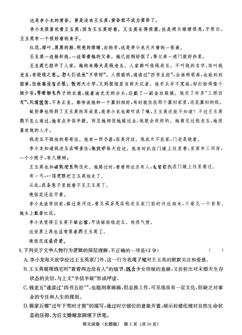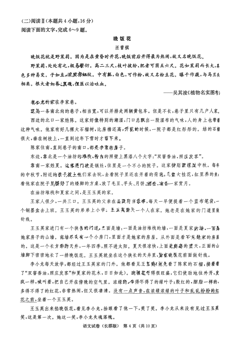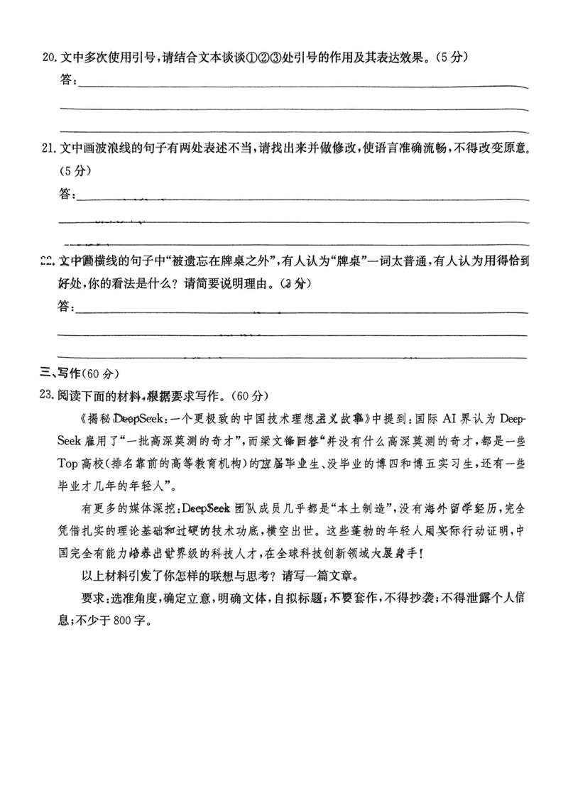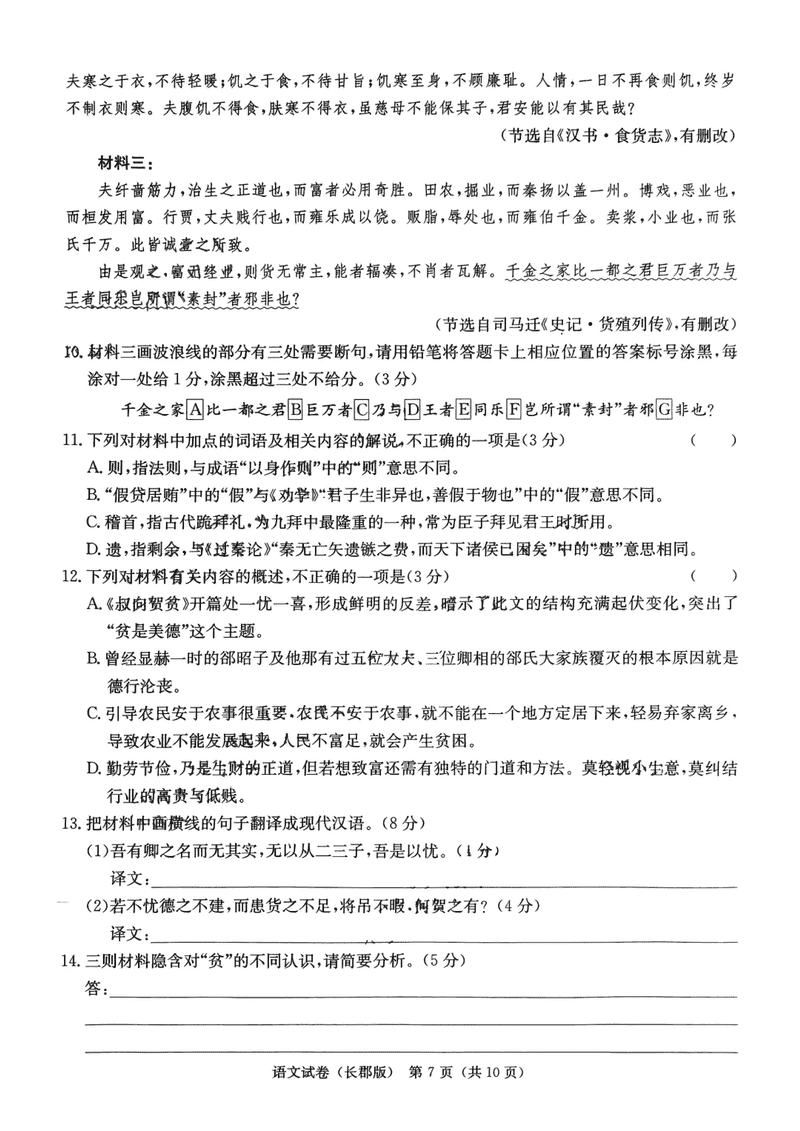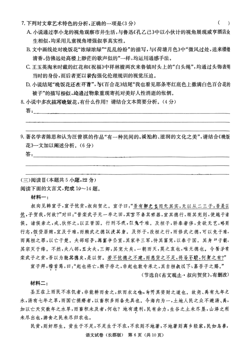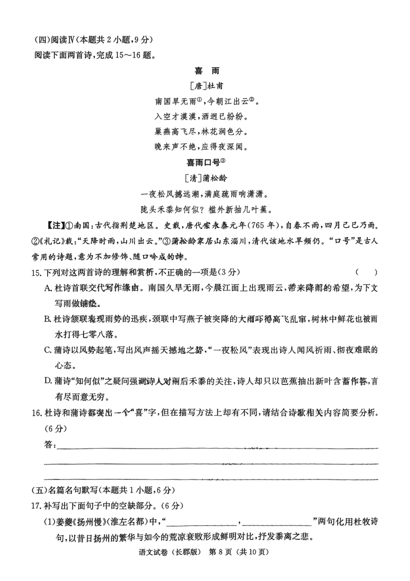 湖南 语文试题