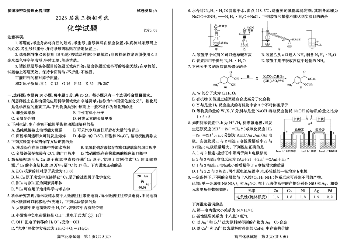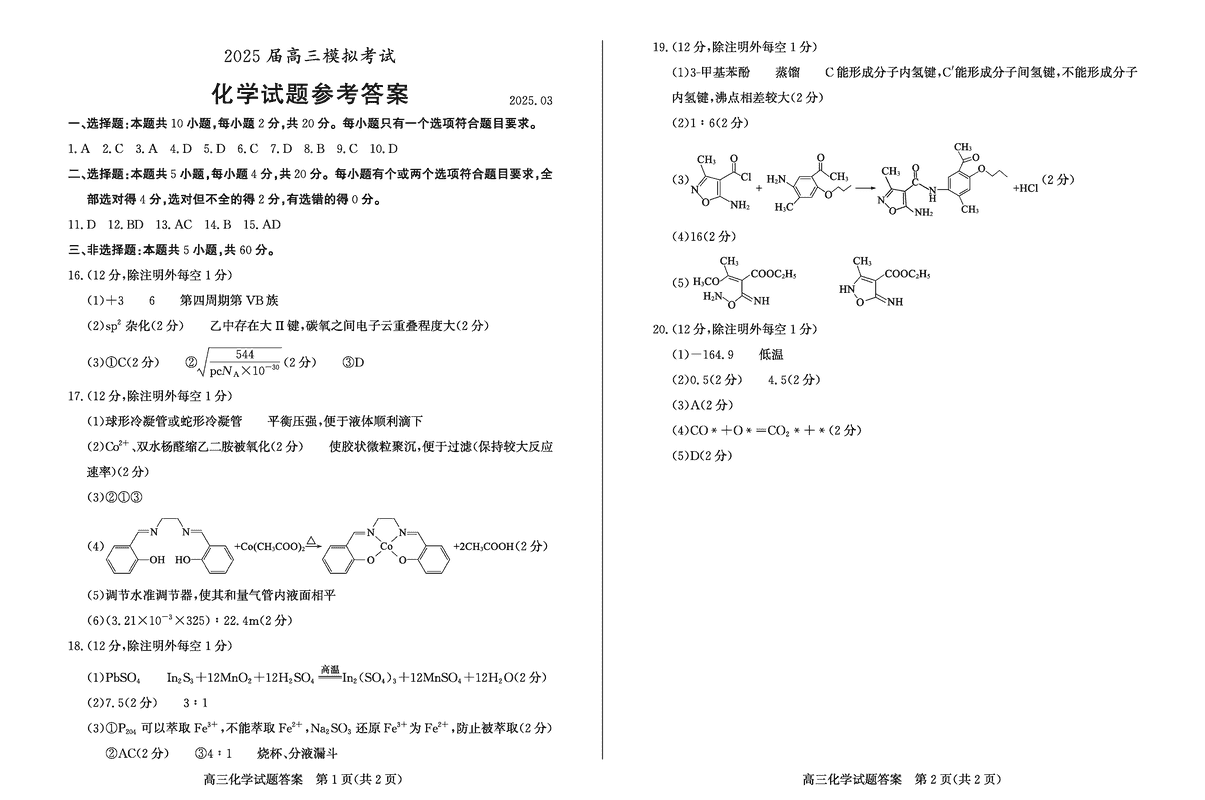 枣庄二调2025届高三模考化学试题及答案 时间:2025-03-20 山东 理综试题 枣庄二调2025届高三模考化学考试已于近日开考,为方便考生考后及时查看考试情况,查漏补缺、弥补不足,本文整理了试题答案解析相关信息! 汇总:枣庄二调2025届高三模拟考试试题及答案汇总 化学试题及答案解析
