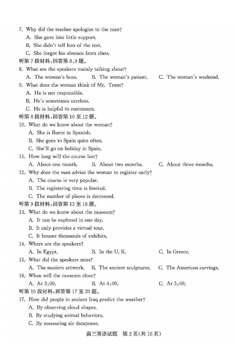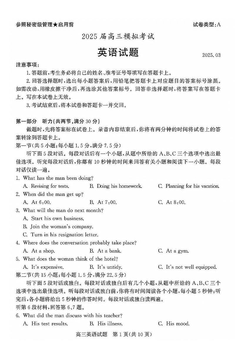 枣庄二调2025届高三模考英语试题及答案 时间:2025-03-20 山东 英语试题 枣庄二调2025届高三模考英语考试已于近日开考,为方便考生考后及时查看考试情况,查漏补缺、弥补不足,本文整理了试题答案解析相关信息! 汇总:枣庄二调2025届高三模拟考试试题及答案汇总 英语试题及答案解析