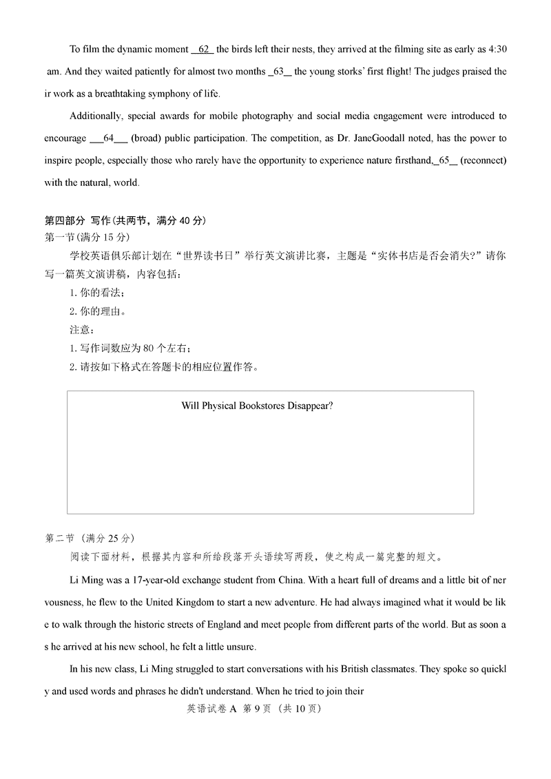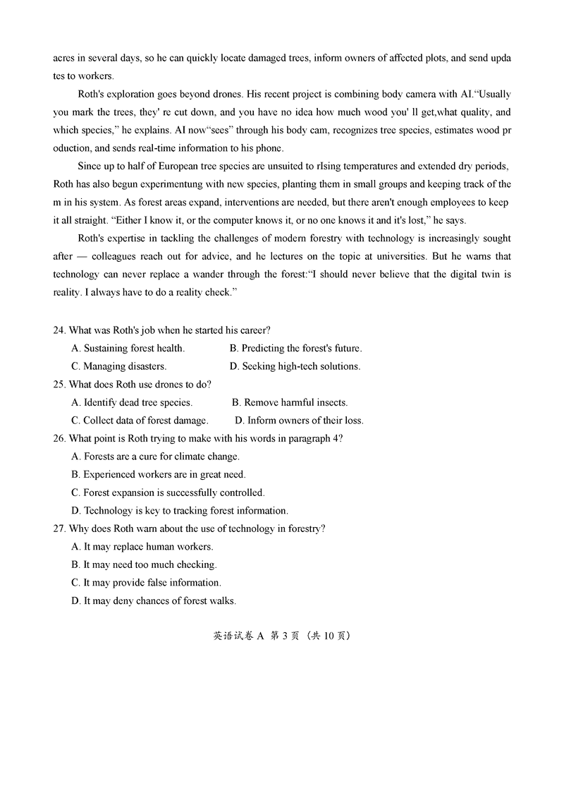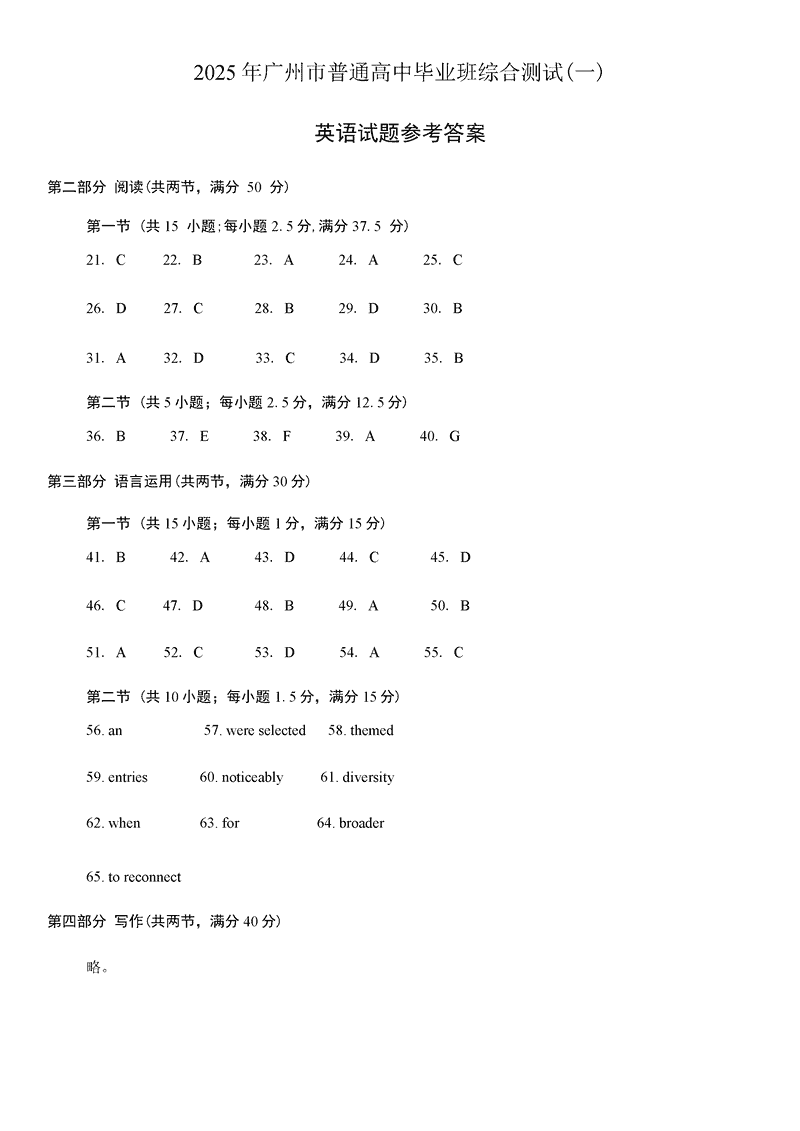 2025年广州市普通高中毕业班综合测试(一)英语试题及答案