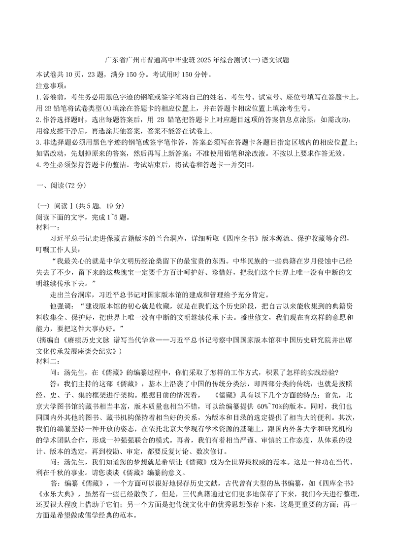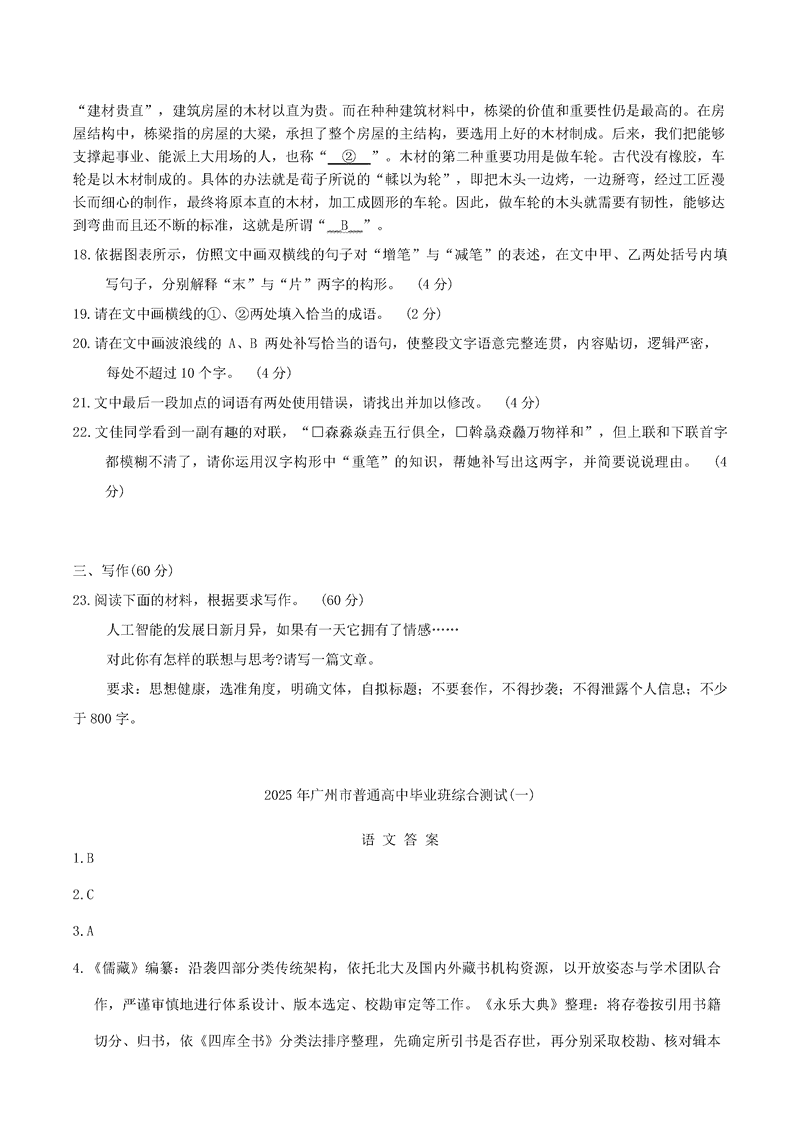 2025年广州市普通高中毕业班综合测试(一)语文试题及答案