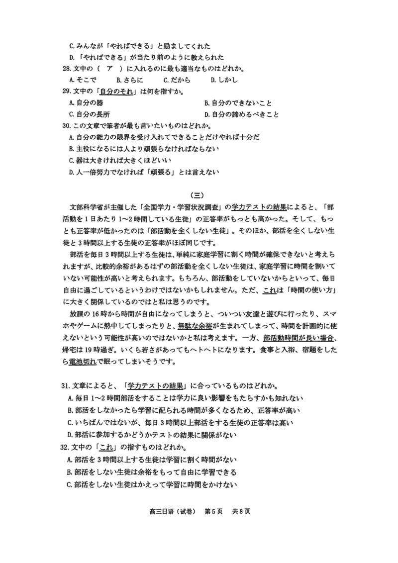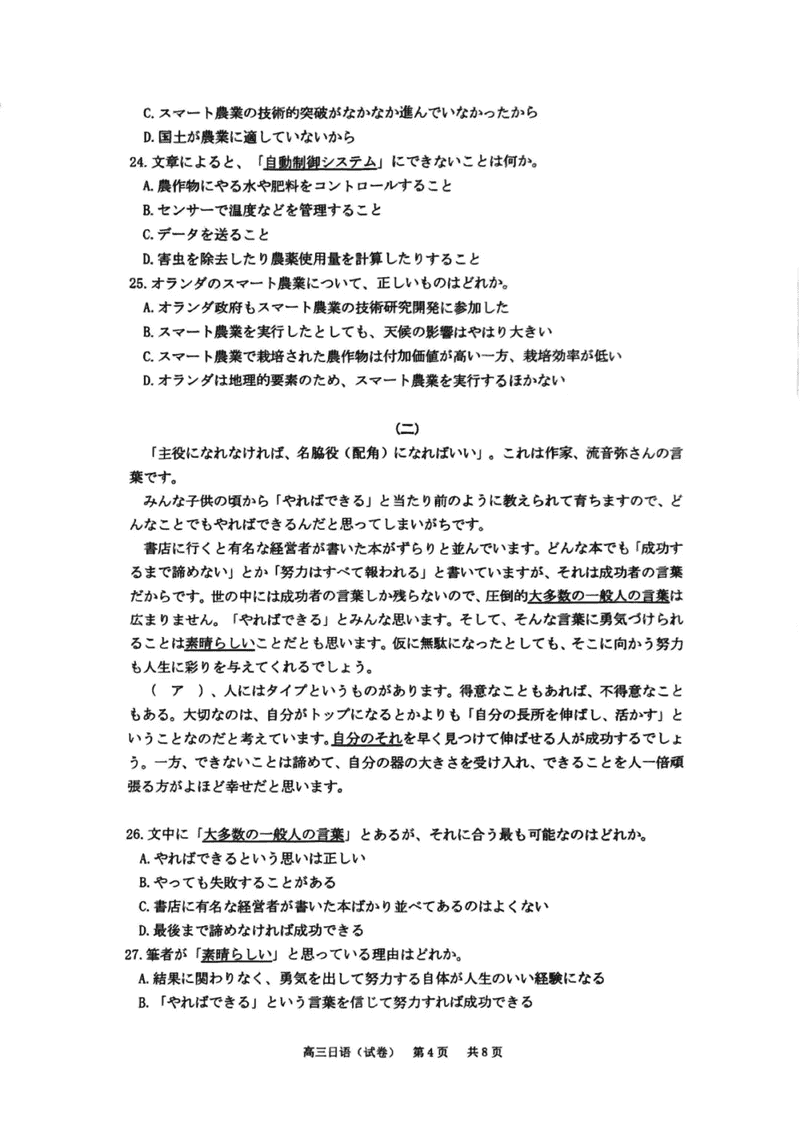 2025年广州市普通高中毕业班综合测试(一)日语试题及答案