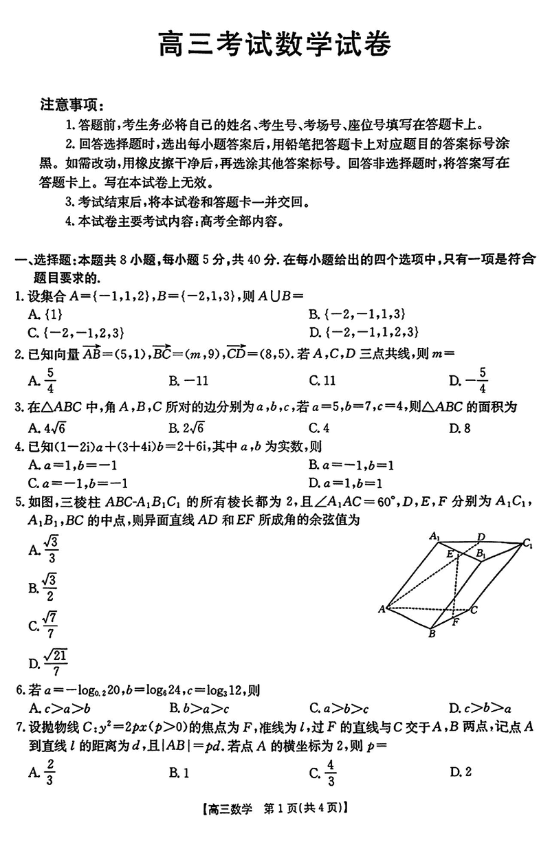 辽阳市2025届高三下学期一模数学试题及答案 时间:2025-03-20 辽宁 数学试题 辽阳市2025届高三下学期一模数学考试已于近日开考,为方便考生考后及时查看考试情况,查漏补缺、弥补不足,本文整理了试题答案解析相关信息! 汇总:辽阳市2025届高三下学期一模试题及答案汇总 数学试题及答案解析