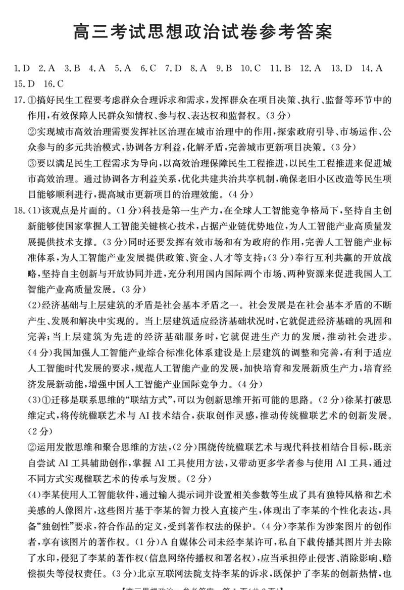 辽阳市2025届高三下学期一模政治试题及答案 时间:2025-03-20 辽宁 文综试题 辽阳市2025届高三下学期一模政治考试已于近日开考,为方便考生考后及时查看考试情况,查漏补缺、弥补不足,本文整理了试题答案解析相关信息! 汇总:辽阳市2025届高三下学期一模试题及答案汇总 政治试题及答案解析