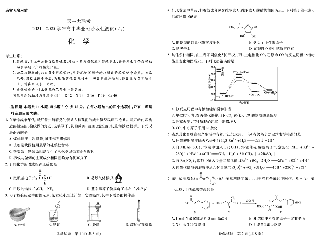 河南省天一大联考2024-2025学年高三阶段性测试(六)化学试题及答案