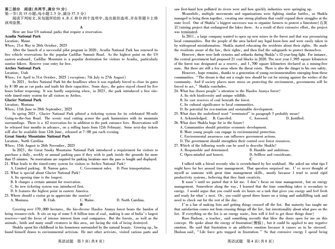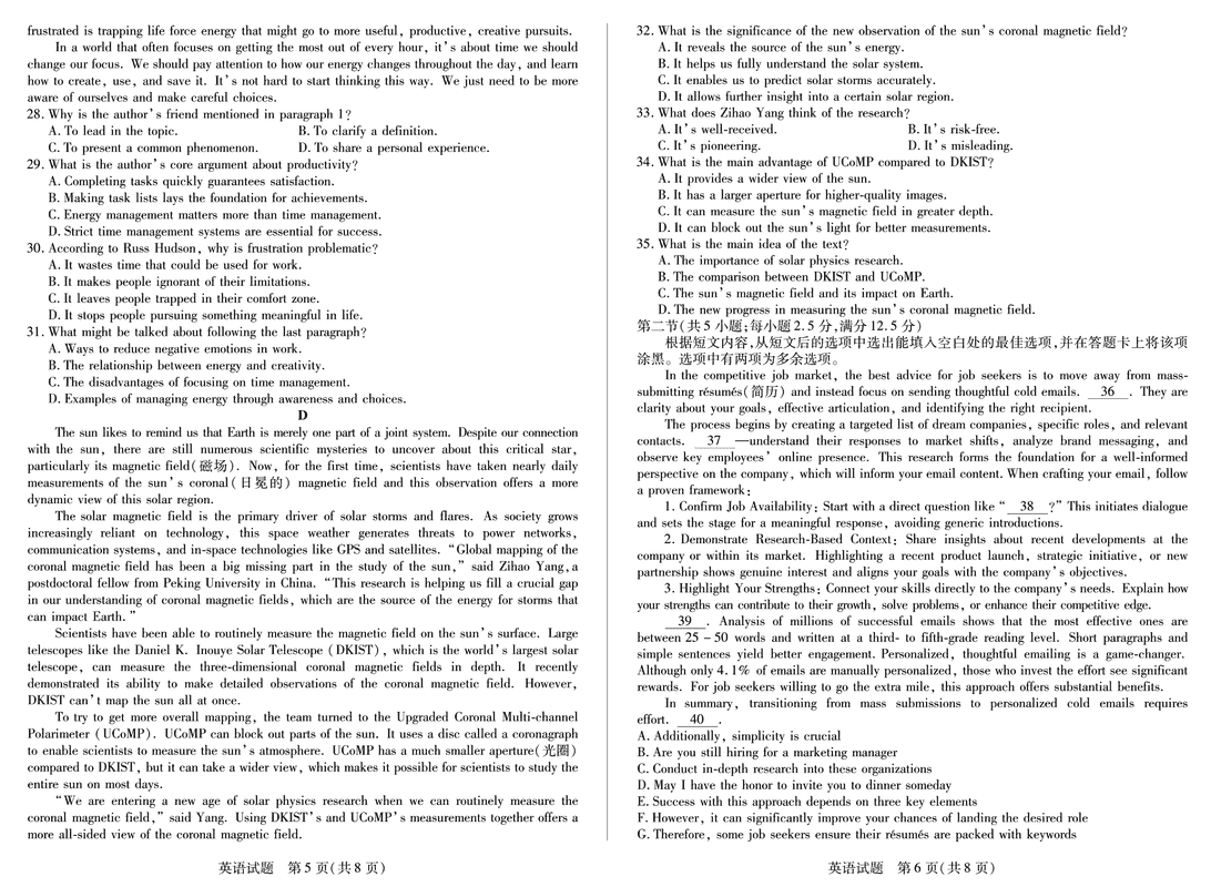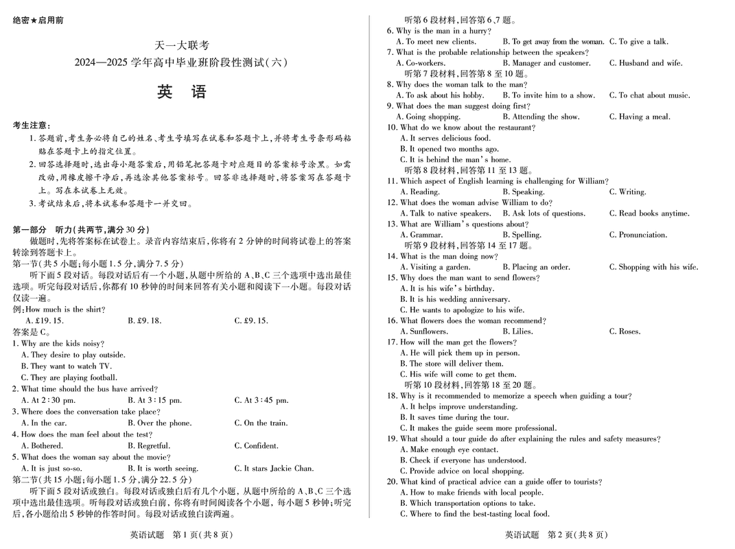 河南省天一大联考2024-2025学年高三阶段性测试(六)英语试题及答案