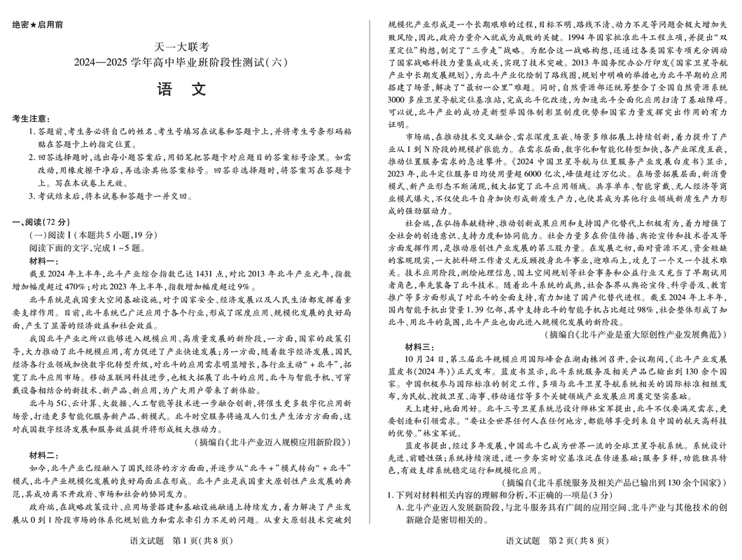 河南省天一大联考2024-2025学年高三阶段性测试(六)语文试题及答案