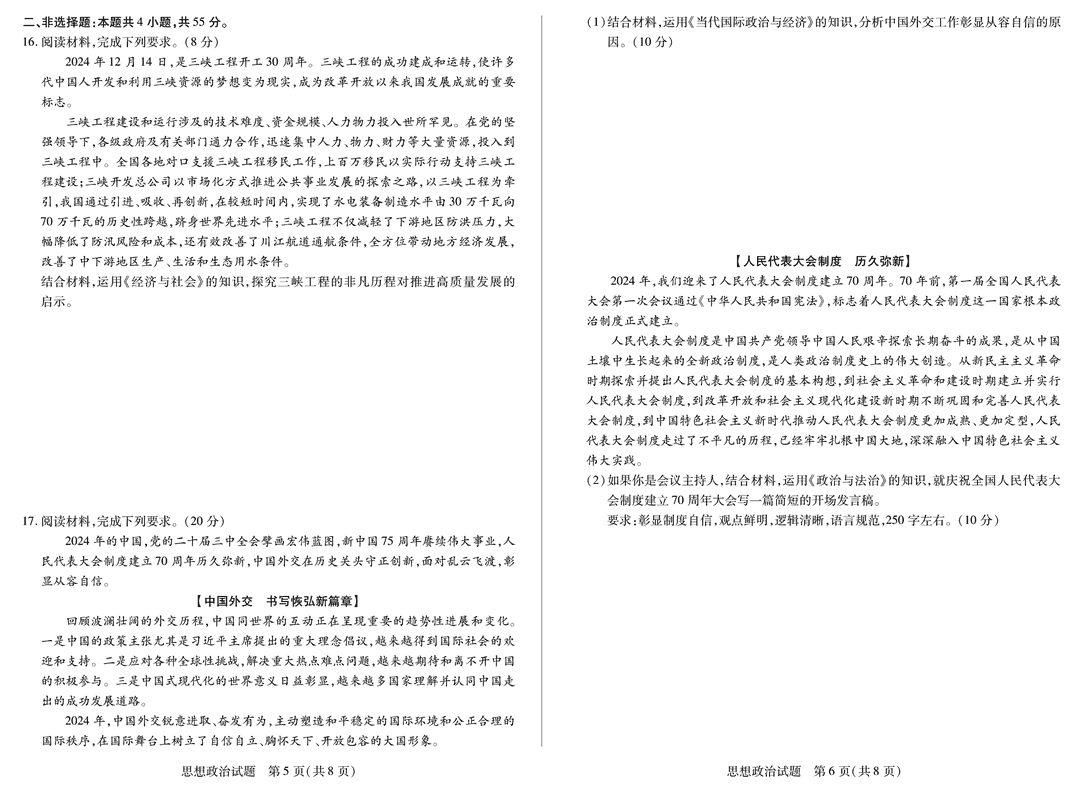 河南省天一大联考2024-2025学年高三阶段性测试(六)政治试题及答案