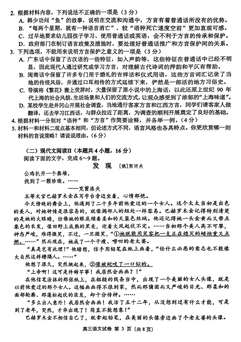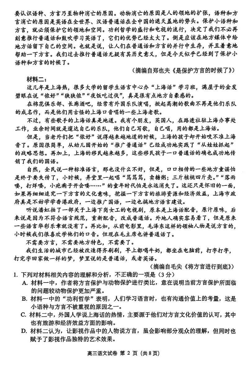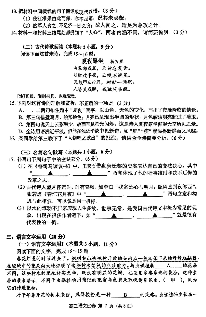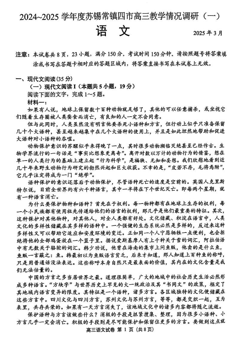 2025届苏锡常镇四市一模高三下学期教学情况调研(一)语文试题及答案