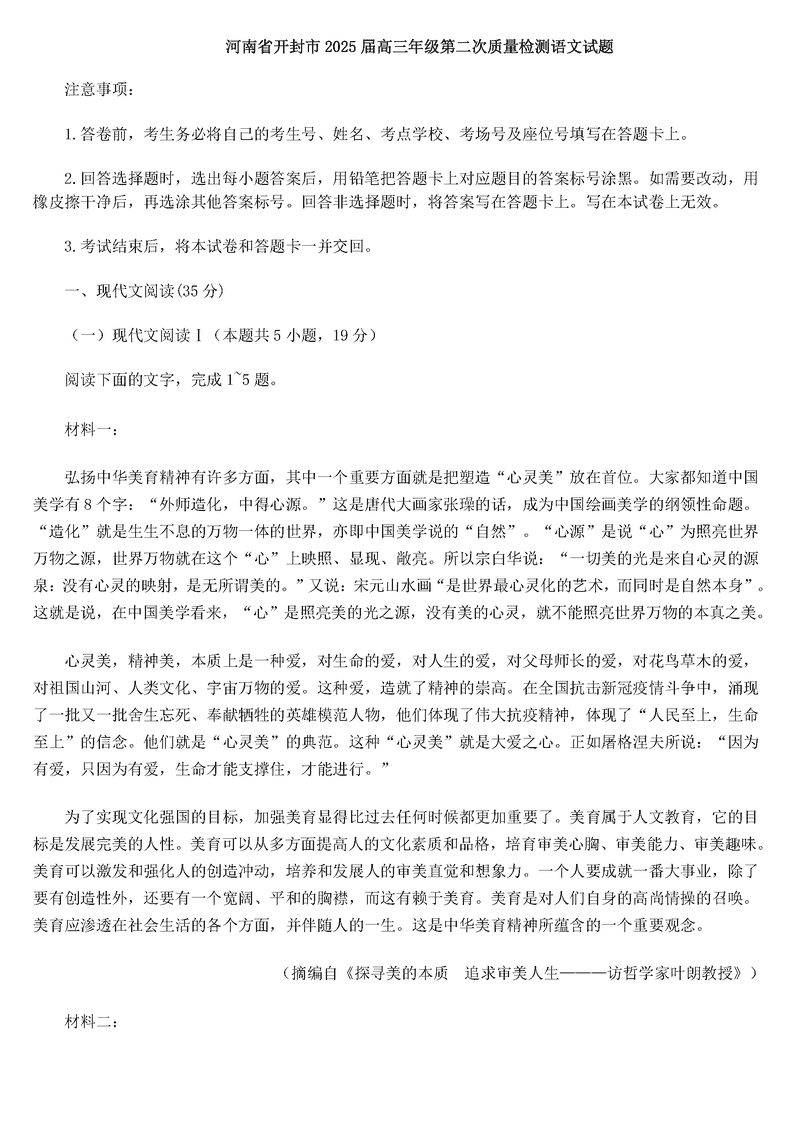 河南三市2025届高三第二次质量检测语文试题及答案 时间:2025-03-21 河南 语文试题 河南三市(开封市、周口市、商丘市)2025届高三第二次质量检测语文考试已于近日开考,为方便考生考后及时查看考试情况,查漏补缺、弥补不足,本文整理了试题答案解析相关信息! 汇总:河南三市2025届高三第二次质量检测试题及答案汇总 语文试题及答案解析