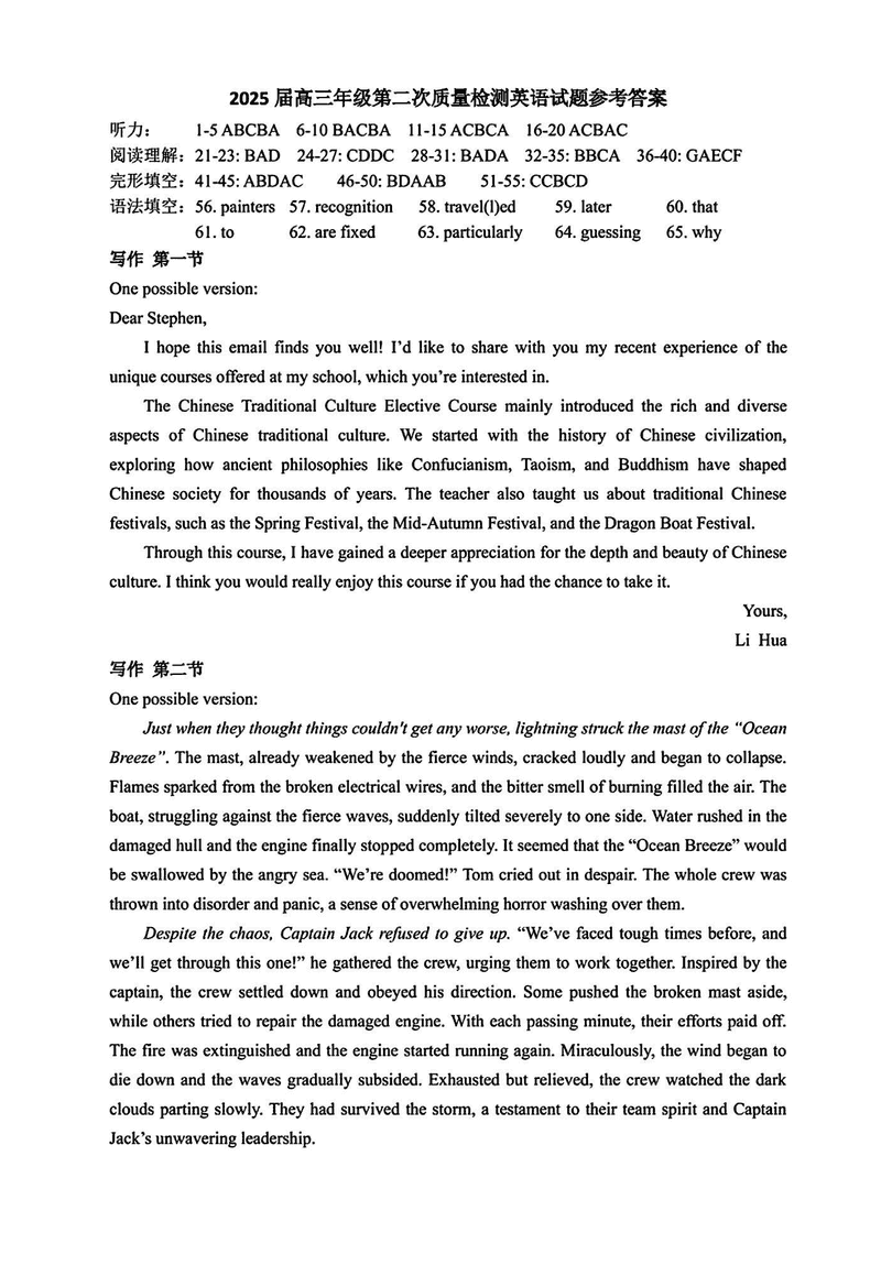 河南三市2025届高三第二次质量检测英语试题及答案 时间:2025-03-21 河南 英语试题 河南三市(开封市、周口市、商丘市)2025届高三第二次质量检测英语考试已于近日开考,为方便考生考后及时查看考试情况,查漏补缺、弥补不足,本文整理了试题答案解析相关信息! 汇总:河南三市2025届高三第二次质量检测试题及答案汇总 英语试题及答案解析