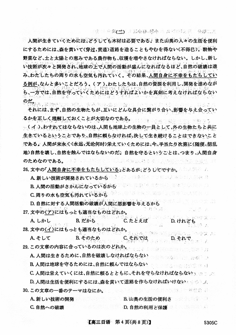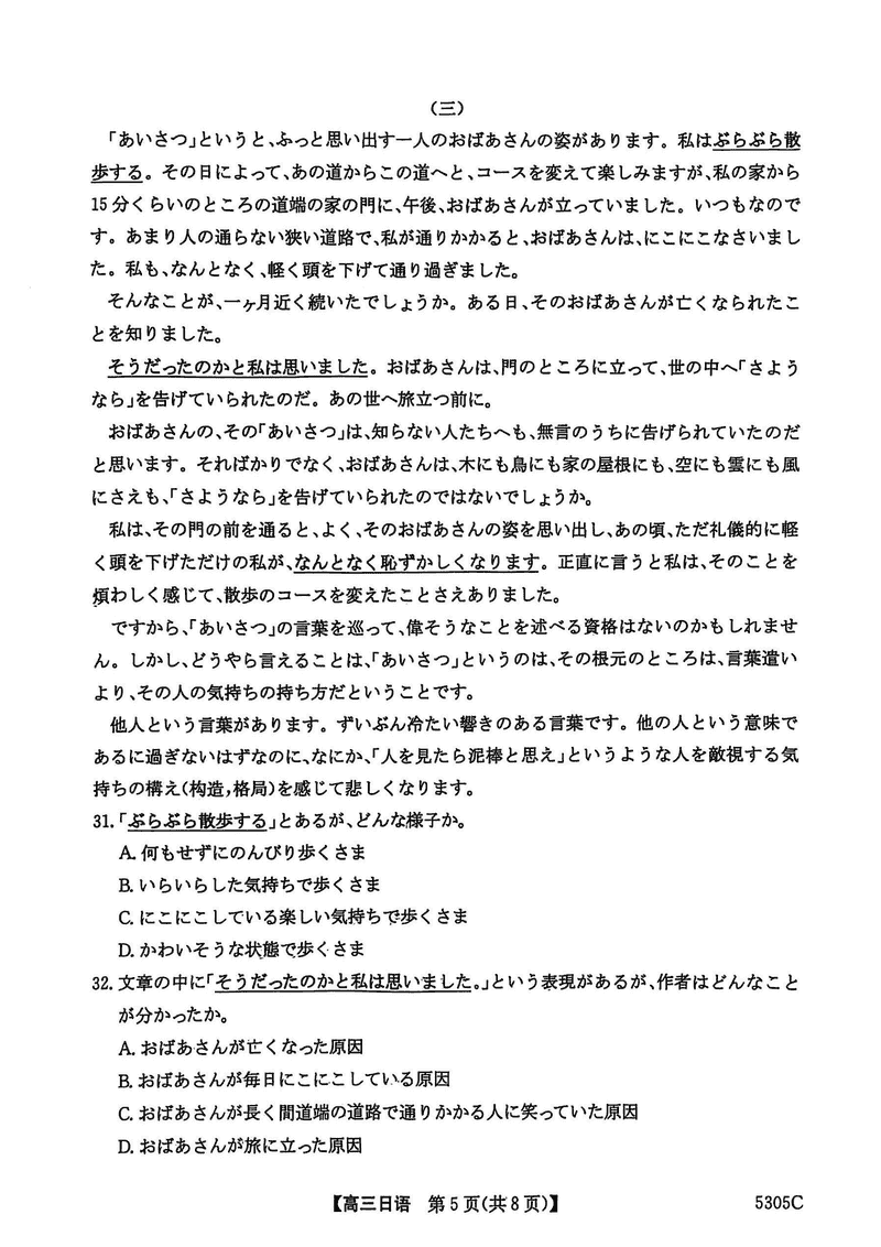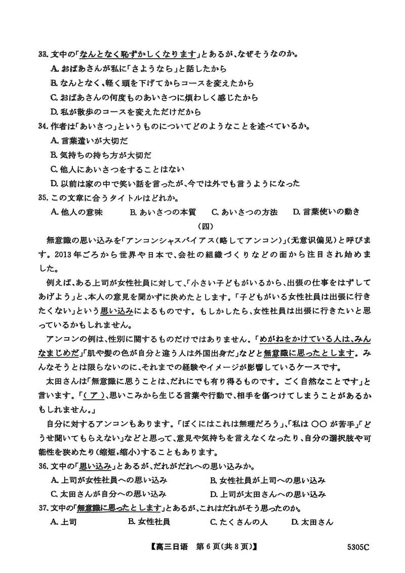 南宁二模2025届高三第二次适应性测试日语试题及答案
