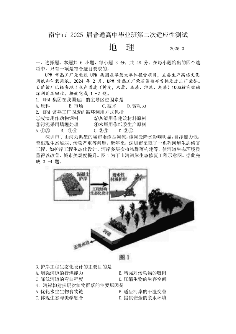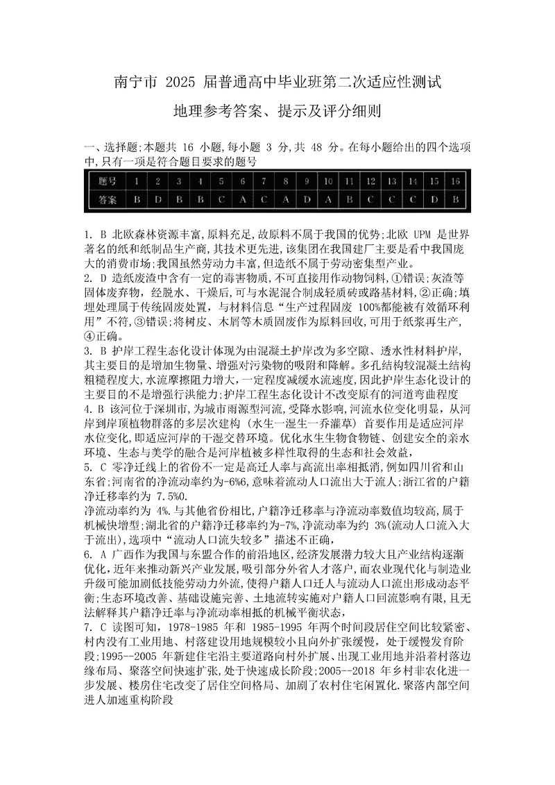 南宁二模2025届高三第二次适应性测试地理试题及答案