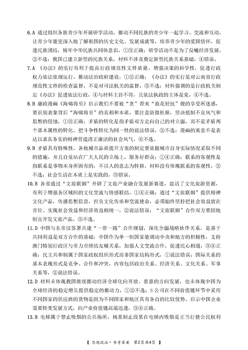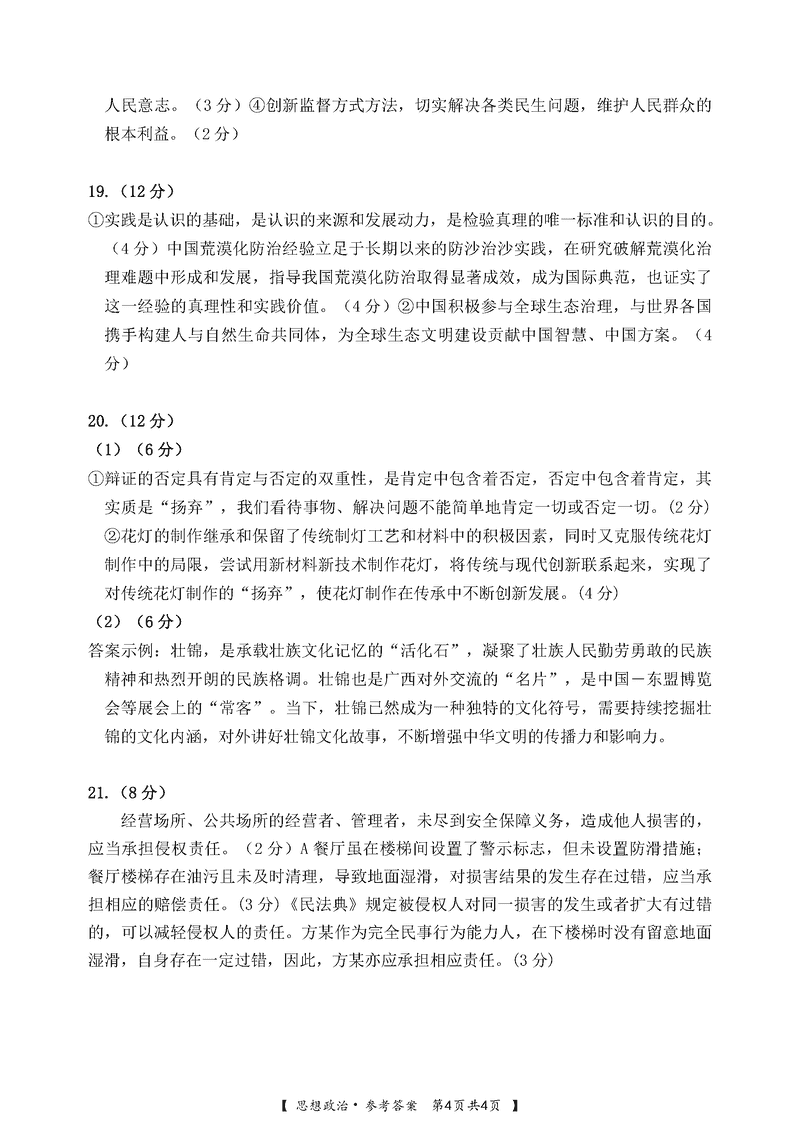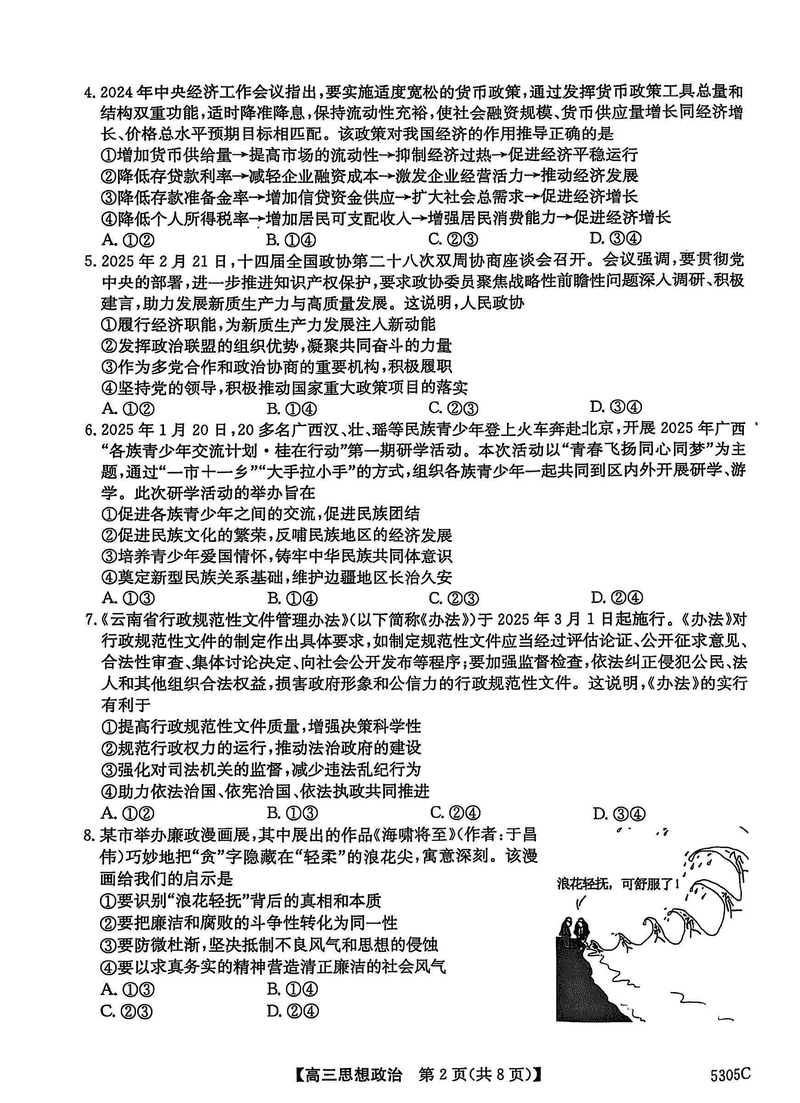 南宁二模2025届高三第二次适应性测试政治试题及答案