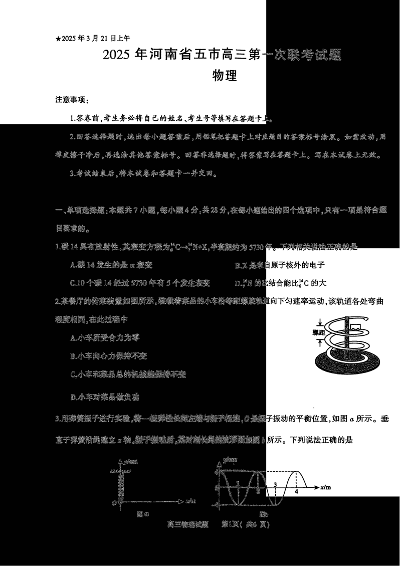 河南五市一模2025年高三第一次联考物理试题及答案 时间:2025-03-24 河南 理综试题 河南(驻马店、漯河、南阳、信阳、三门峡)五市一模2025年高三第一次联考物理考试已于近日开考,为方便考生考后及时查看考试情况,查漏补缺、弥补不足,本文整理了试题答案解析相关信息! 汇总:河南五市一模2025年高三第一次联考试题及答案汇总 物理试题及答案解析