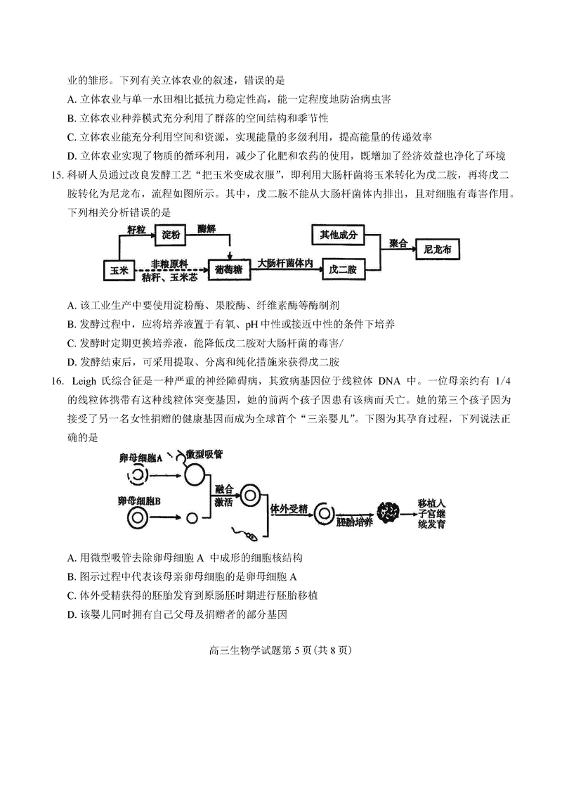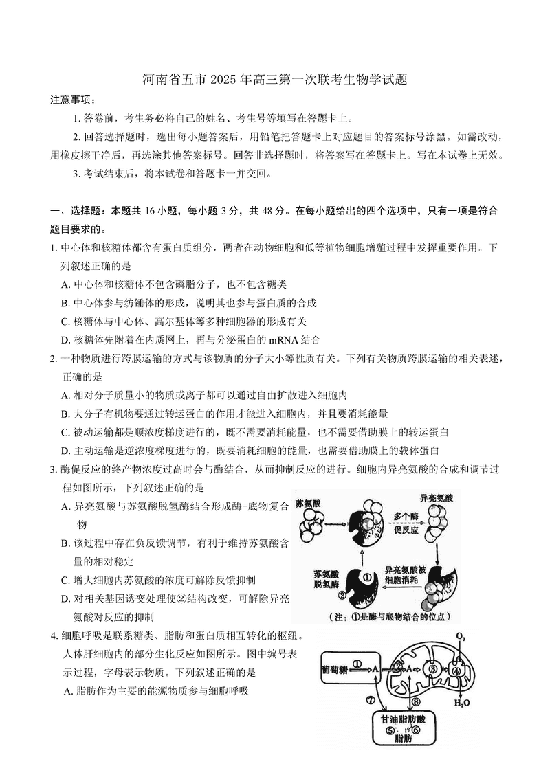 河南五市一模2025年高三第一次联考生物试题及答案 时间:2025-03-24 河南 理综试题 河南(驻马店、漯河、南阳、信阳、三门峡)五市一模2025年高三第一次联考生物考试已于近日开考,为方便考生考后及时查看考试情况,查漏补缺、弥补不足,本文整理了试题答案解析相关信息! 汇总:河南五市一模2025年高三第一次联考试题及答案汇总 生物试题及答案解析