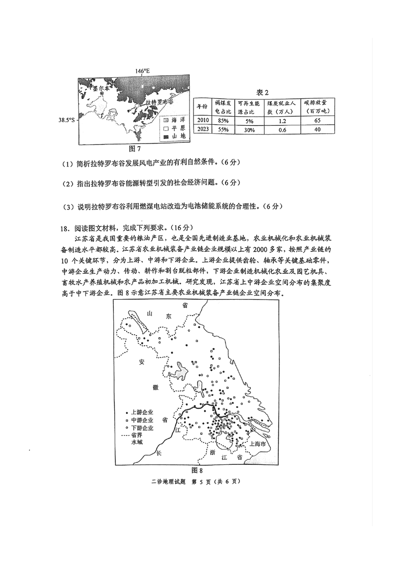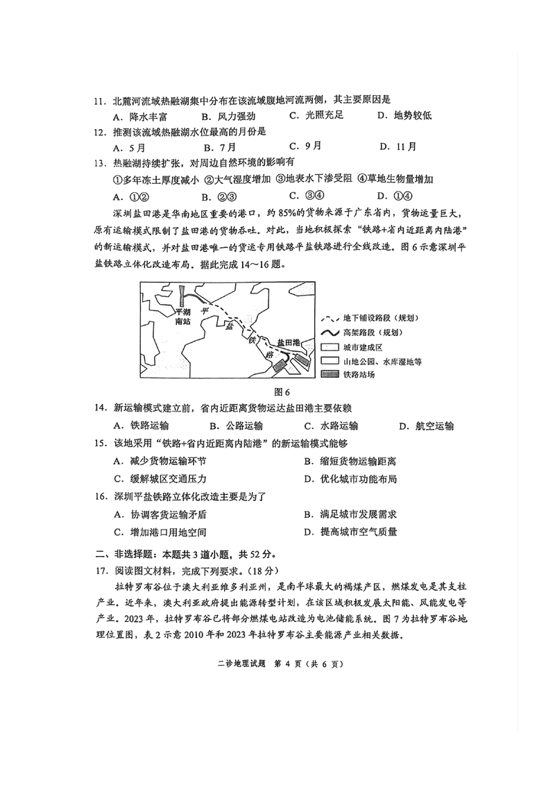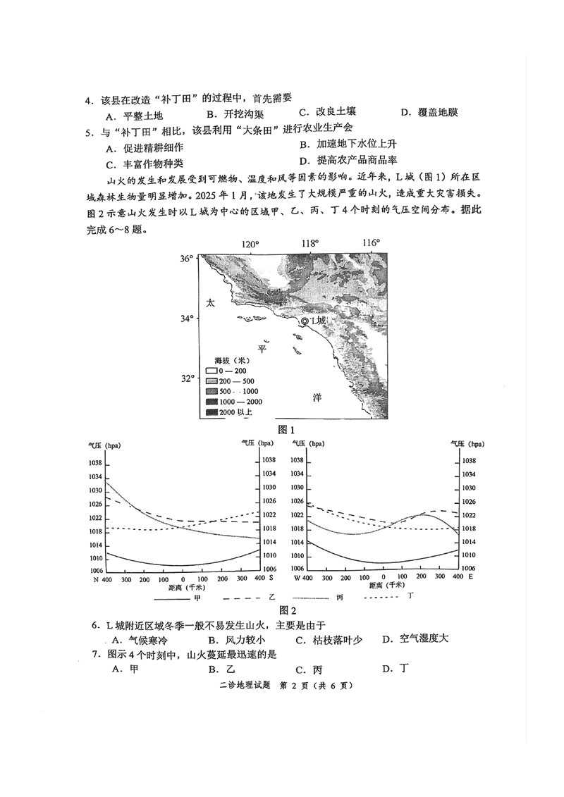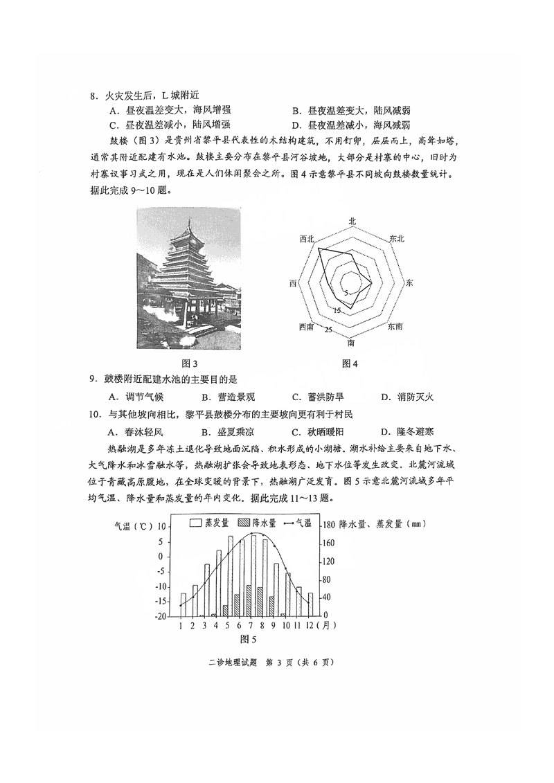 乐山市、自贡市、宜宾市2025届高三第二次诊断考地理试题及答案