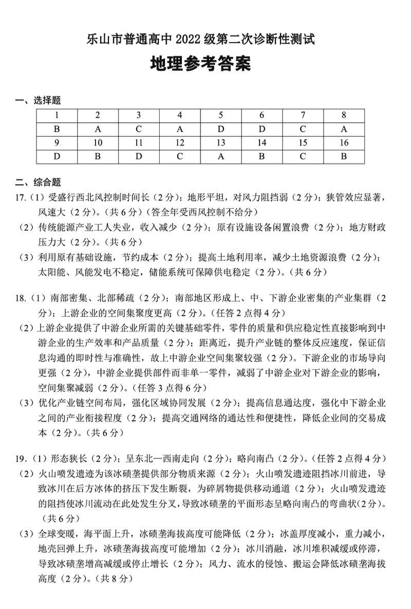 乐山市、自贡市、宜宾市2025届高三第二次诊断性地理考试已于近日开考,为方便考生考后及时查看考试情况,查漏补缺、弥补不足,本文整理了试题答案解析相关信息!