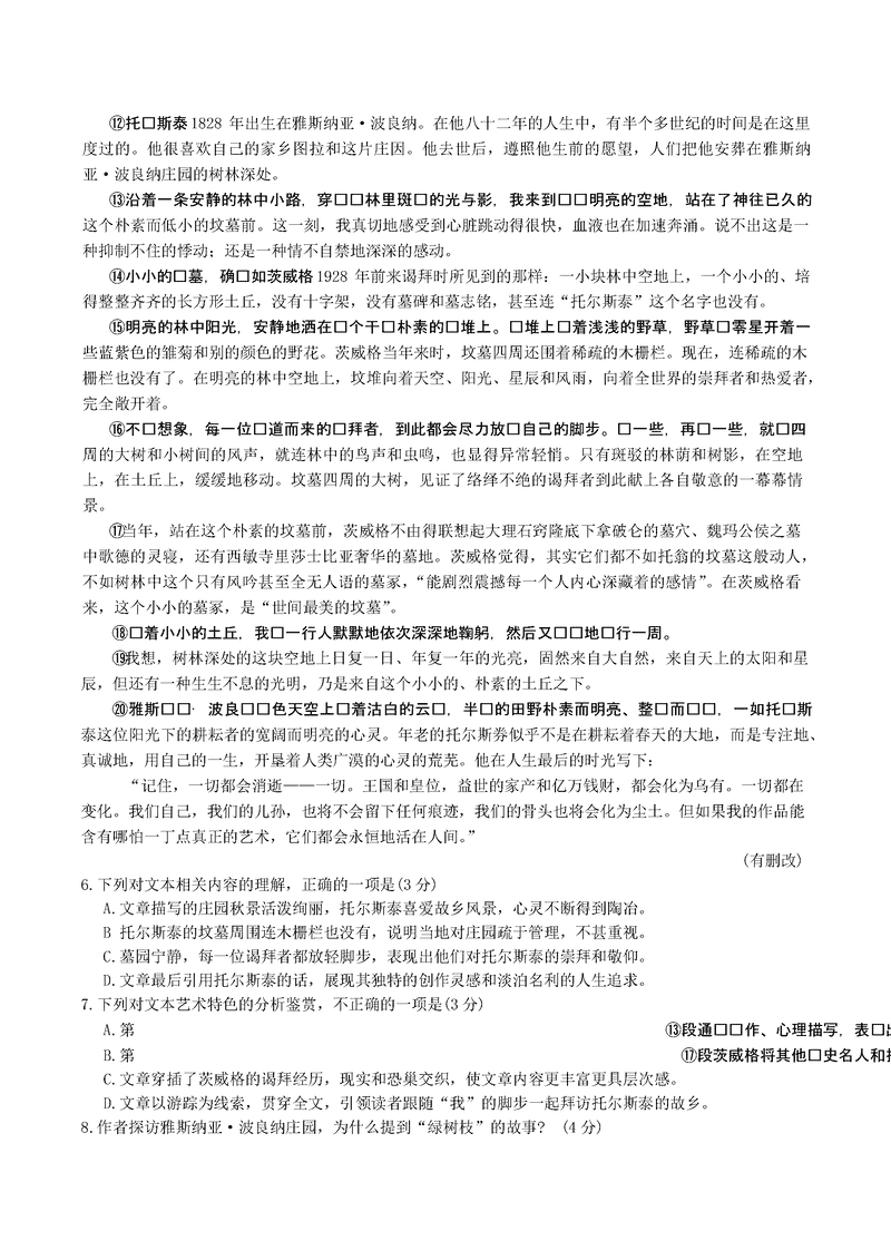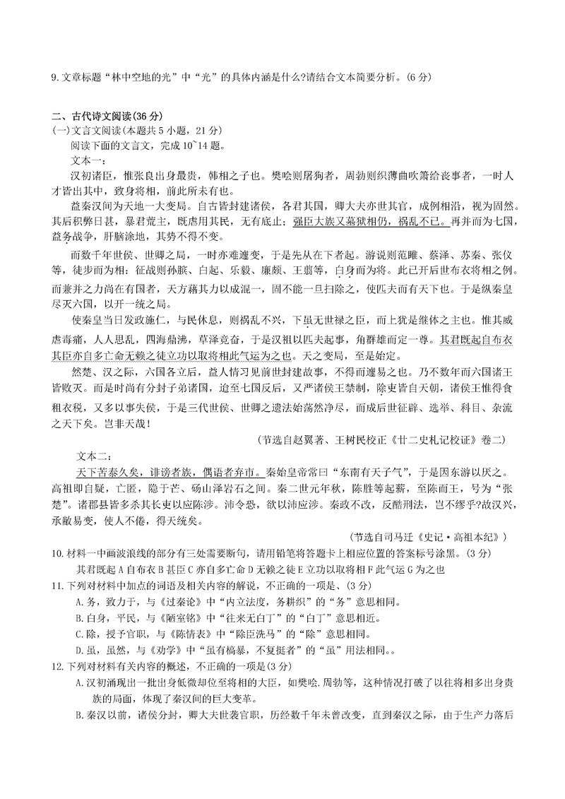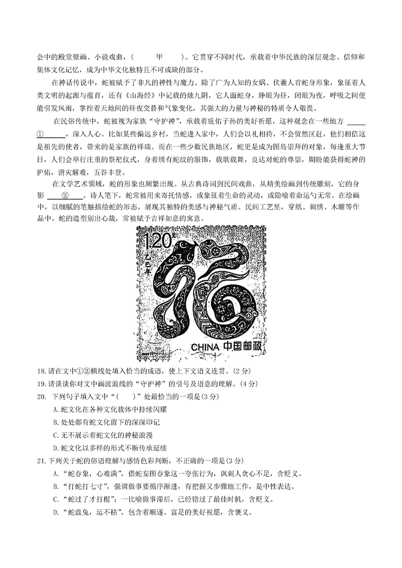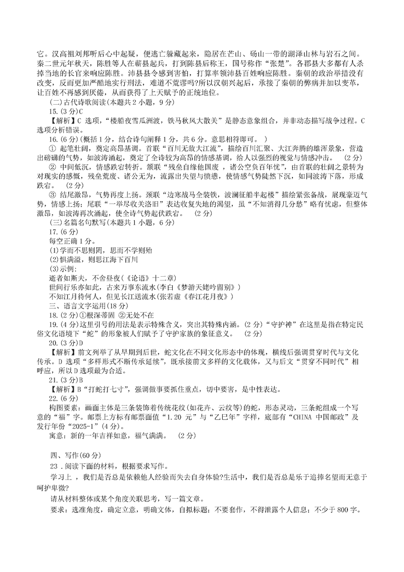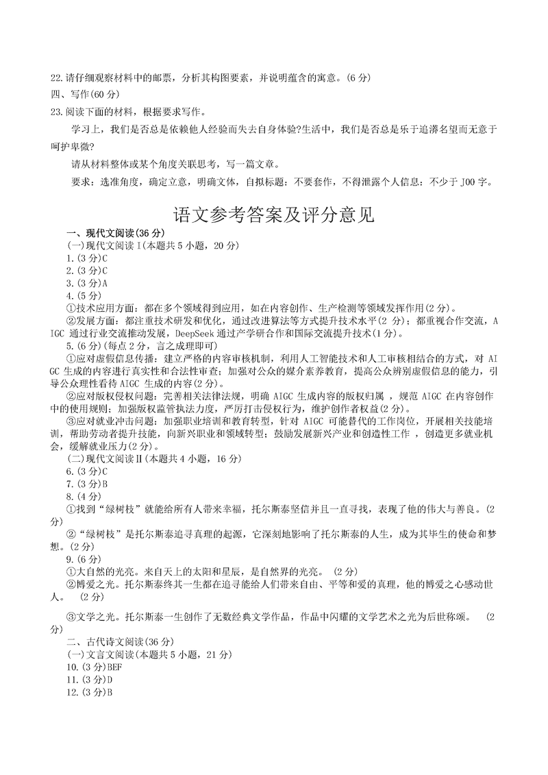 乐山市、自贡市、宜宾市2025届高三第二次诊断考语文试题及答案