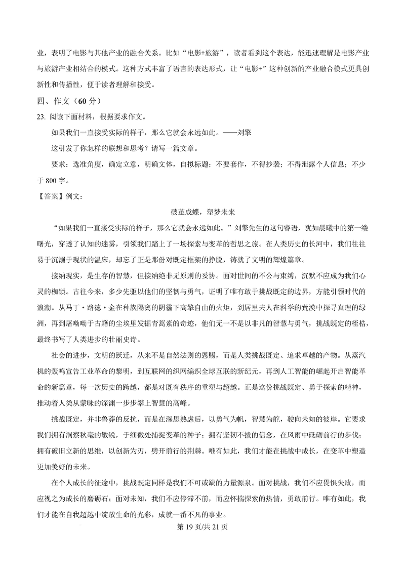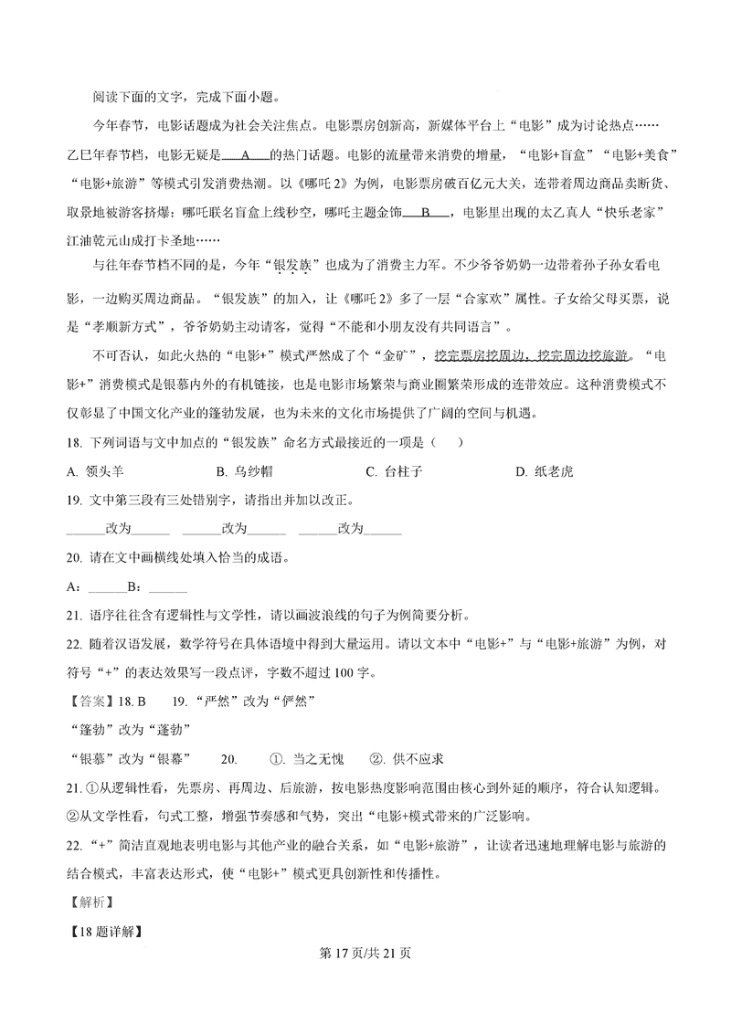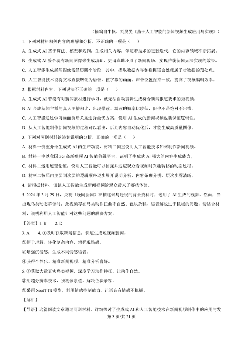 温州市2025届高三下学3月二模语文试题及答案 时间:2025-03-24 浙江 语文试题 温州市2025届高三下学3月二模语文考试已于近日开考,为方便考生考后及时查看考试情况,查漏补缺、弥补不足,本文整理了试题答案解析相关信息! 汇总:温州市2025届高三下学3月二模试题及答案汇总 语文试题及答案解析