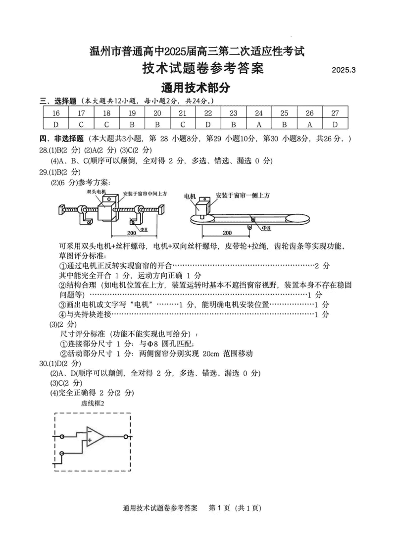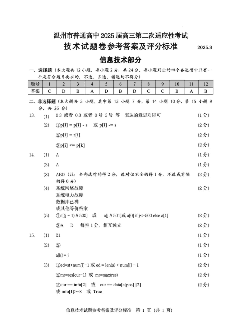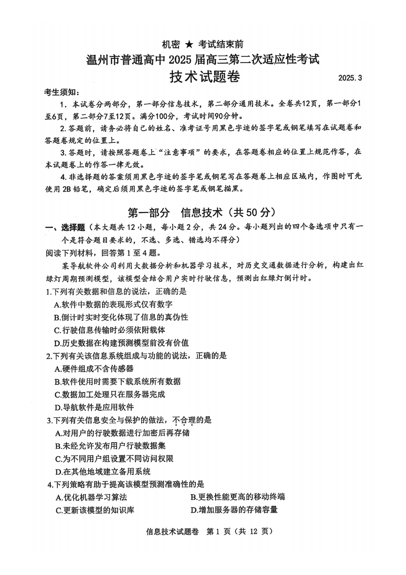 温州市2025届高三下学3月二模技术试题及答案 时间:2025-03-24 浙江 理综试题 温州市2025届高三下学3月二模技术考试已于近日开考,为方便考生考后及时查看考试情况,查漏补缺、弥补不足,本文整理了试题答案解析相关信息! 汇总:温州市2025届高三下学3月二模试题及答案汇总 技术试题及答案解析