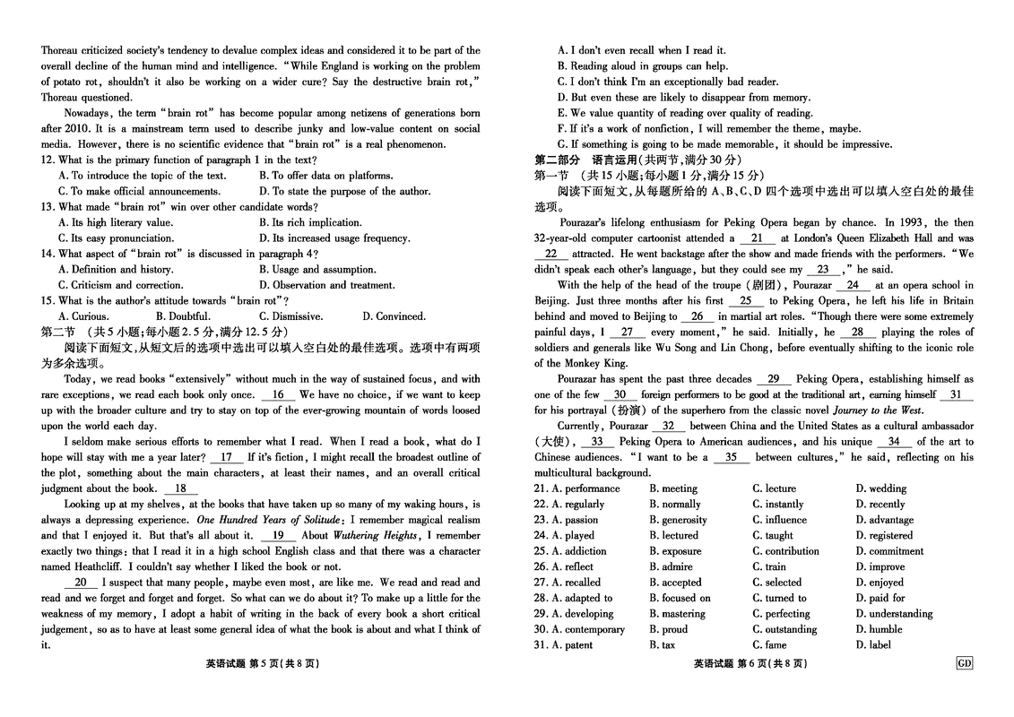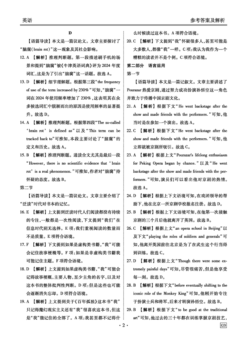 广东省衡水金卷2025届高三3月大联考英语试题及答案 时间:2025-03-24 广东 英语试题 广东省衡水金卷2025届高三3月大联考英语考试已于近日开考,为方便考生考后及时查看考试情况,查漏补缺、弥补不足,本文整理了试题答案解析相关信息! 汇总:广东省衡水金卷2025届高三3月大联考试题及答案汇总 英语试题及答案解析