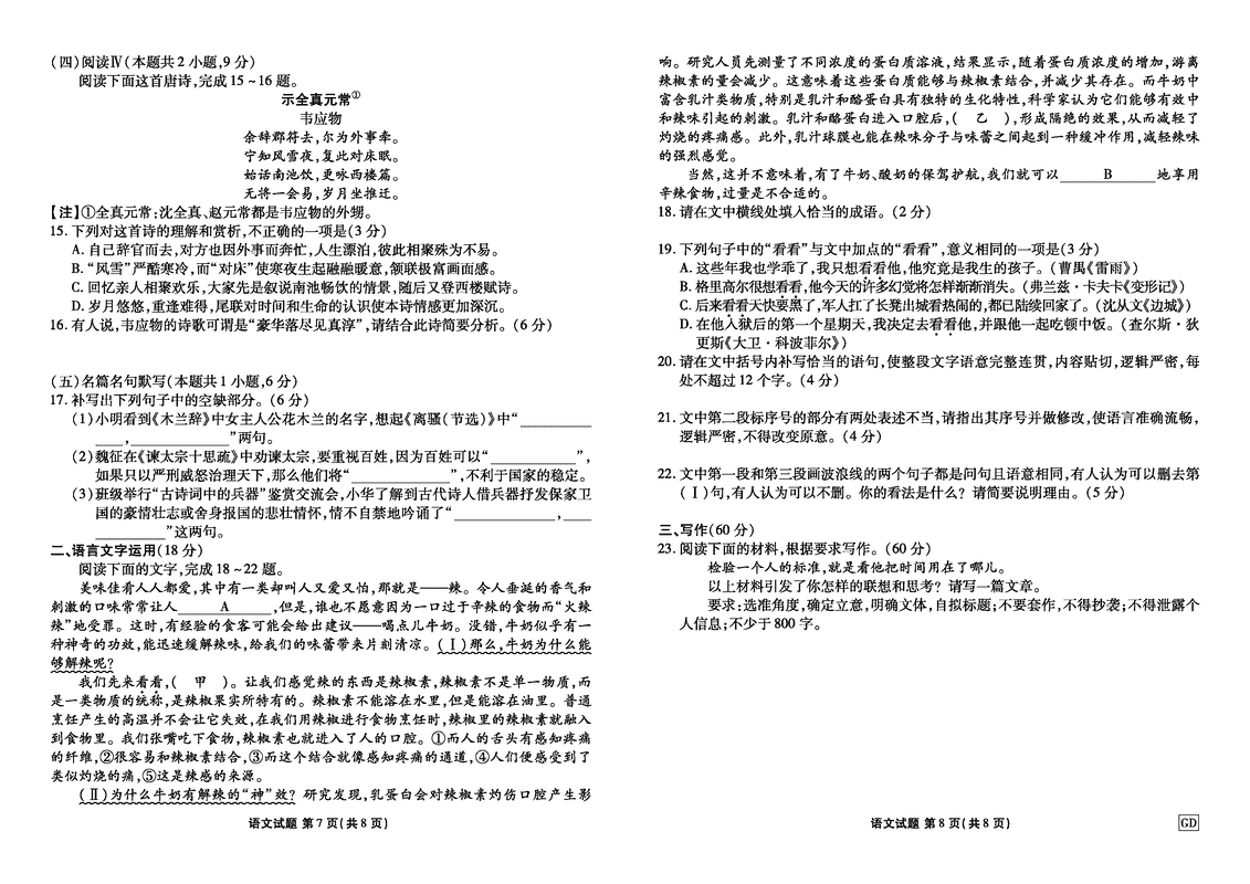 广东省衡水金卷2025届高三3月大联考语文试题及答案 时间:2025-03-24 广东 语文试题 广东省衡水金卷2025届高三3月大联考语文考试已于近日开考,为方便考生考后及时查看考试情况,查漏补缺、弥补不足,本文整理了试题答案解析相关信息! 汇总:广东省衡水金卷2025届高三3月大联考试题及答案汇总 语文试题及答案解析