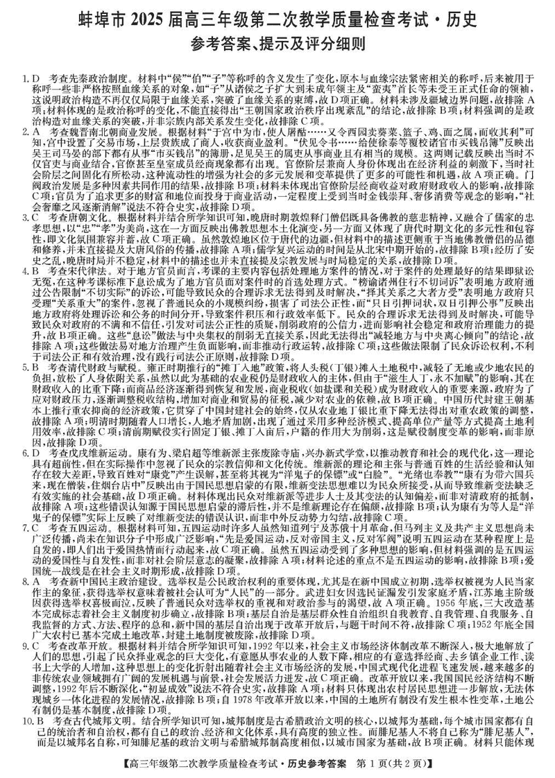 蚌埠市2025届高三第二次教学质检历史试题及答案 时间:2025-03-24 安徽 文综试题 蚌埠市2025届高三第二次教学质检历史考试已于近日开考,为方便考生考后及时查看考试情况,查漏补缺、弥补不足,本文整理了试题答案解析相关信息! 汇总:蚌埠市2025届高三第二次教学质量检查试题及答案汇总 历史试题及答案解析