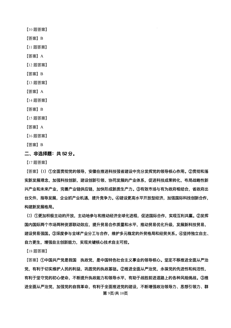 蚌埠市2025届高三第二次教学质检政治试题及答案 时间:2025-03-24 安徽 文综试题 蚌埠市2025届高三第二次教学质检政治考试已于近日开考,为方便考生考后及时查看考试情况,查漏补缺、弥补不足,本文整理了试题答案解析相关信息! 汇总:蚌埠市2025届高三第二次教学质量检查试题及答案汇总 政治试题及答案解析