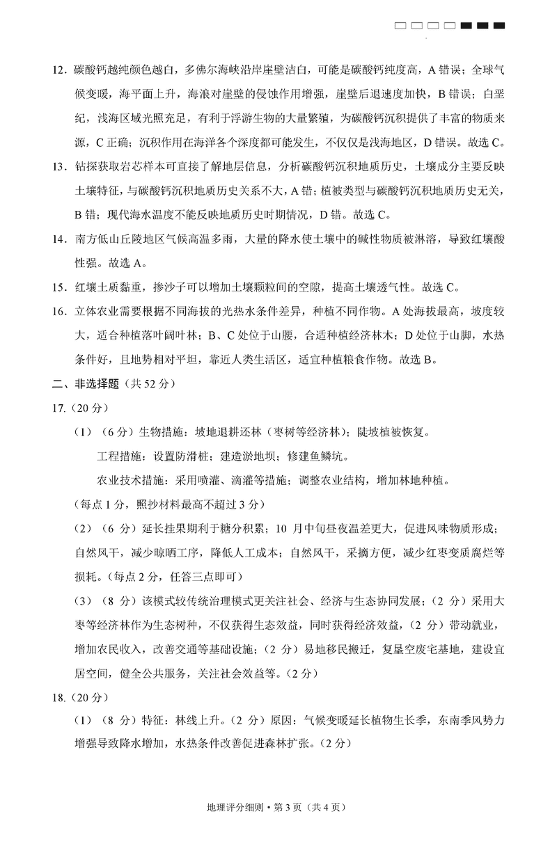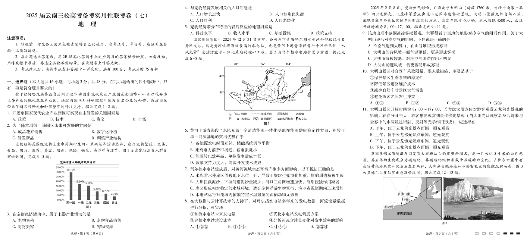 2025届云南三校高三高考备考实用性联考卷(七)地理试题及答案汇总