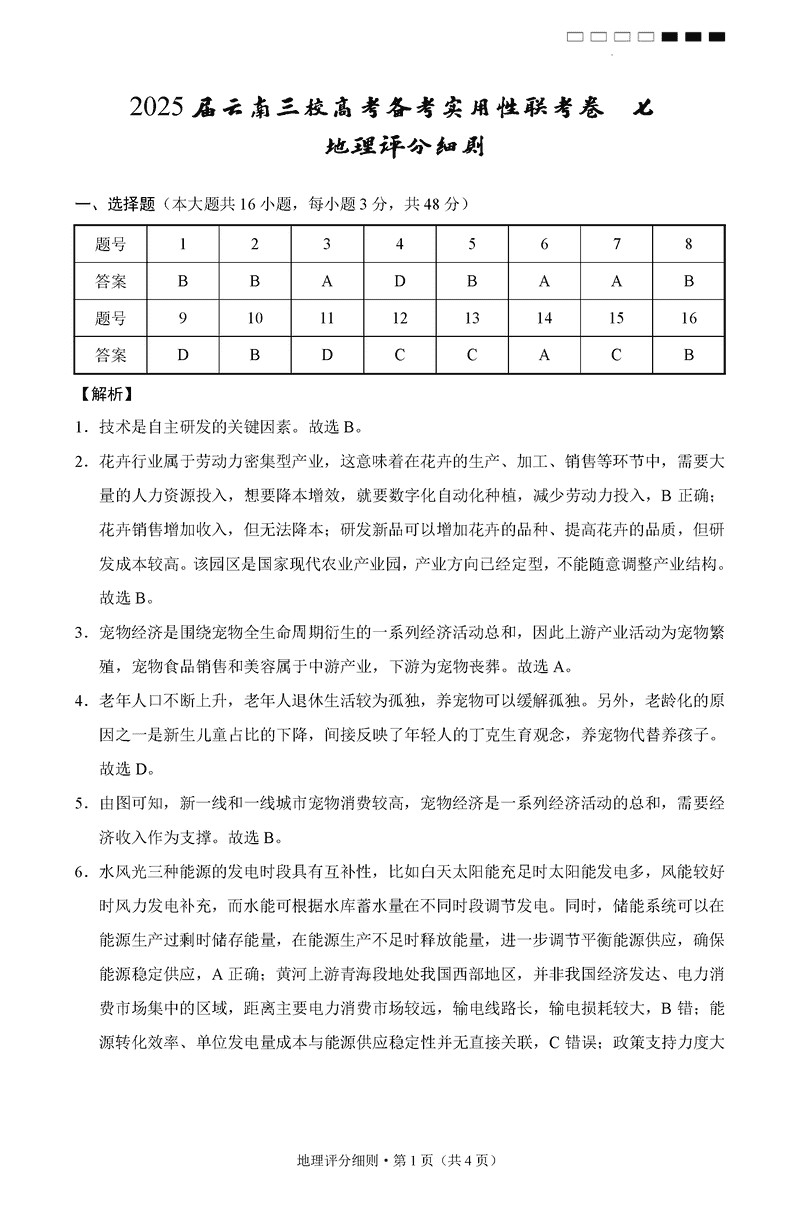 2025届云南三校高三高考备考实用性联考卷(七)地理考试已于近日开考,为方便考生考后及时查看考试情况,查漏补缺、弥补不足,本文整理了试题答案解析相关信息!