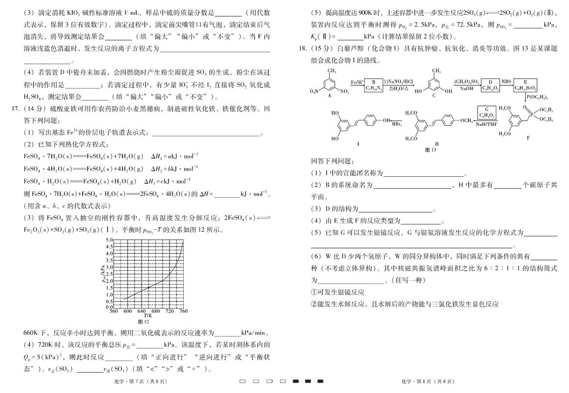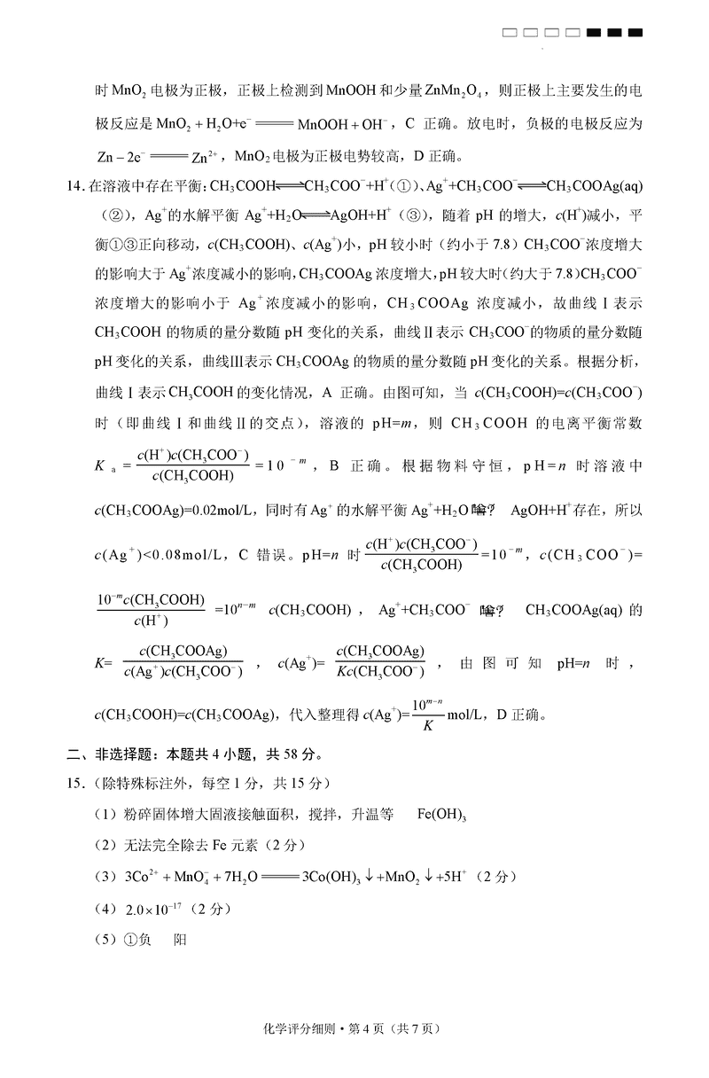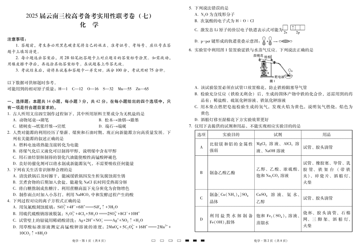 2025届云南三校高三高考备考实用性联考卷(七)化学试题及答案汇总