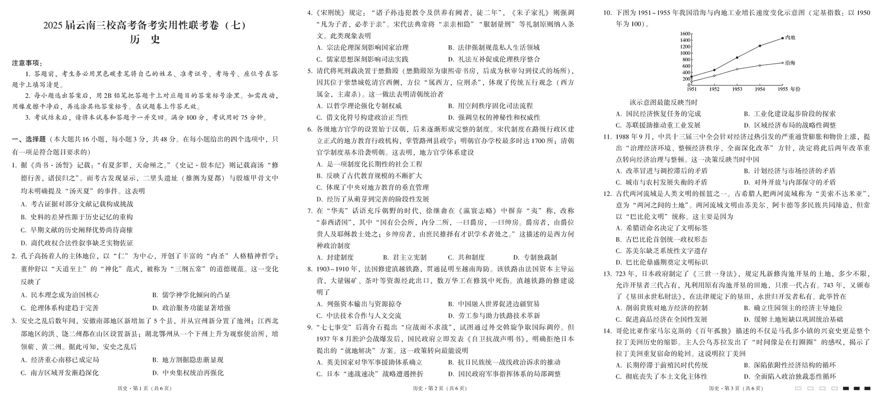 2025届云南三校高三高考备考实用性联考卷(七)历史试题及答案汇总