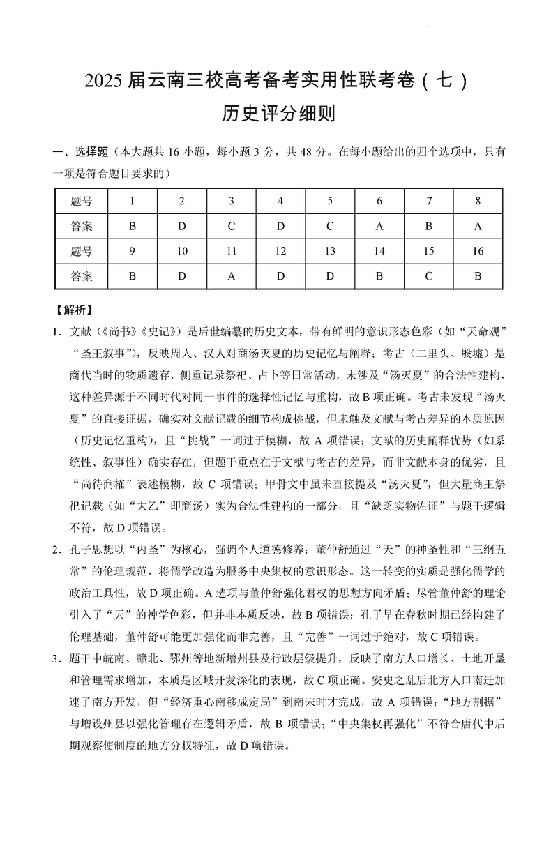 2025届云南三校高三高考备考实用性联考卷(七)历史考试已于近日开考,为方便考生考后及时查看考试情况,查漏补缺、弥补不足,本文整理了试题答案解析相关信息!