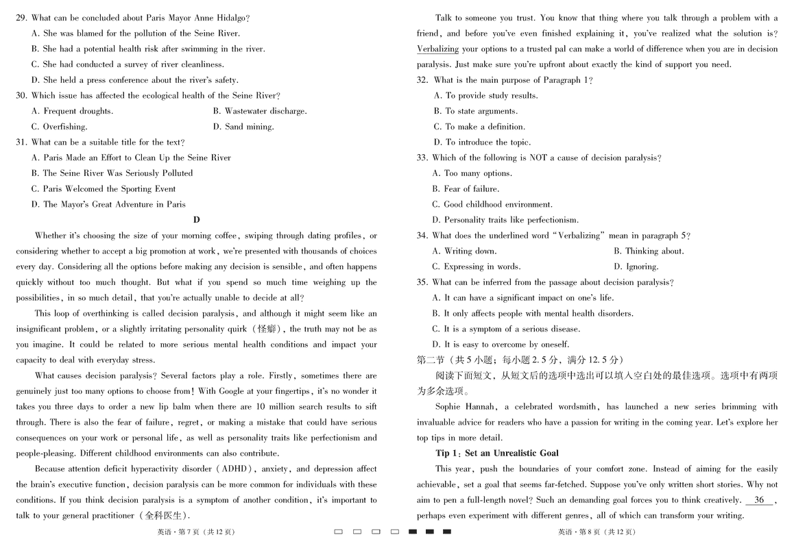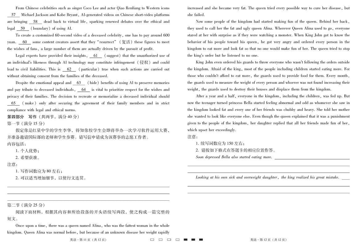 2025届云南三校高三高考备考实用性联考卷(七)英语试题及答案汇总