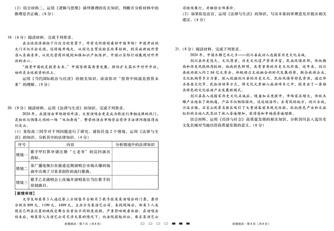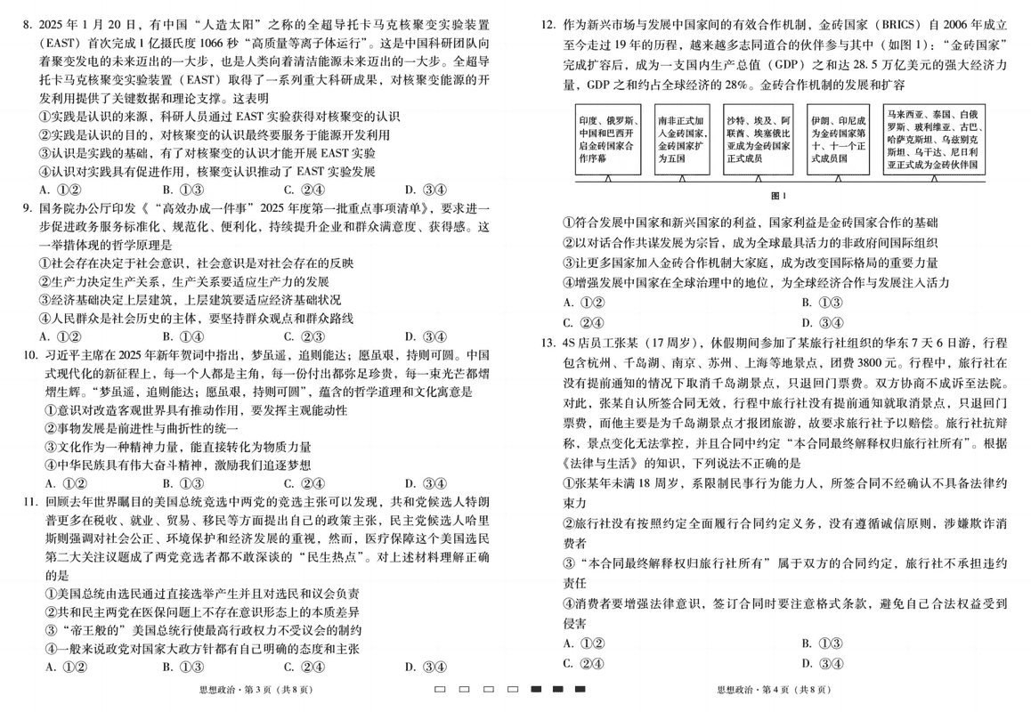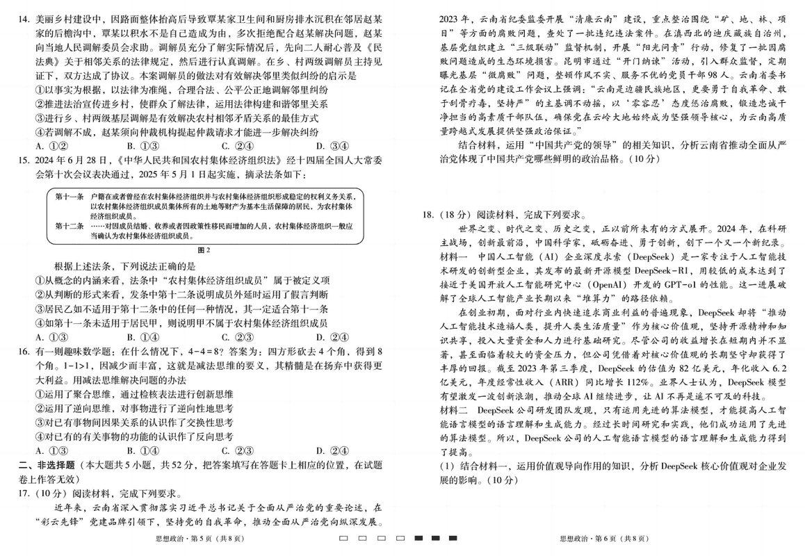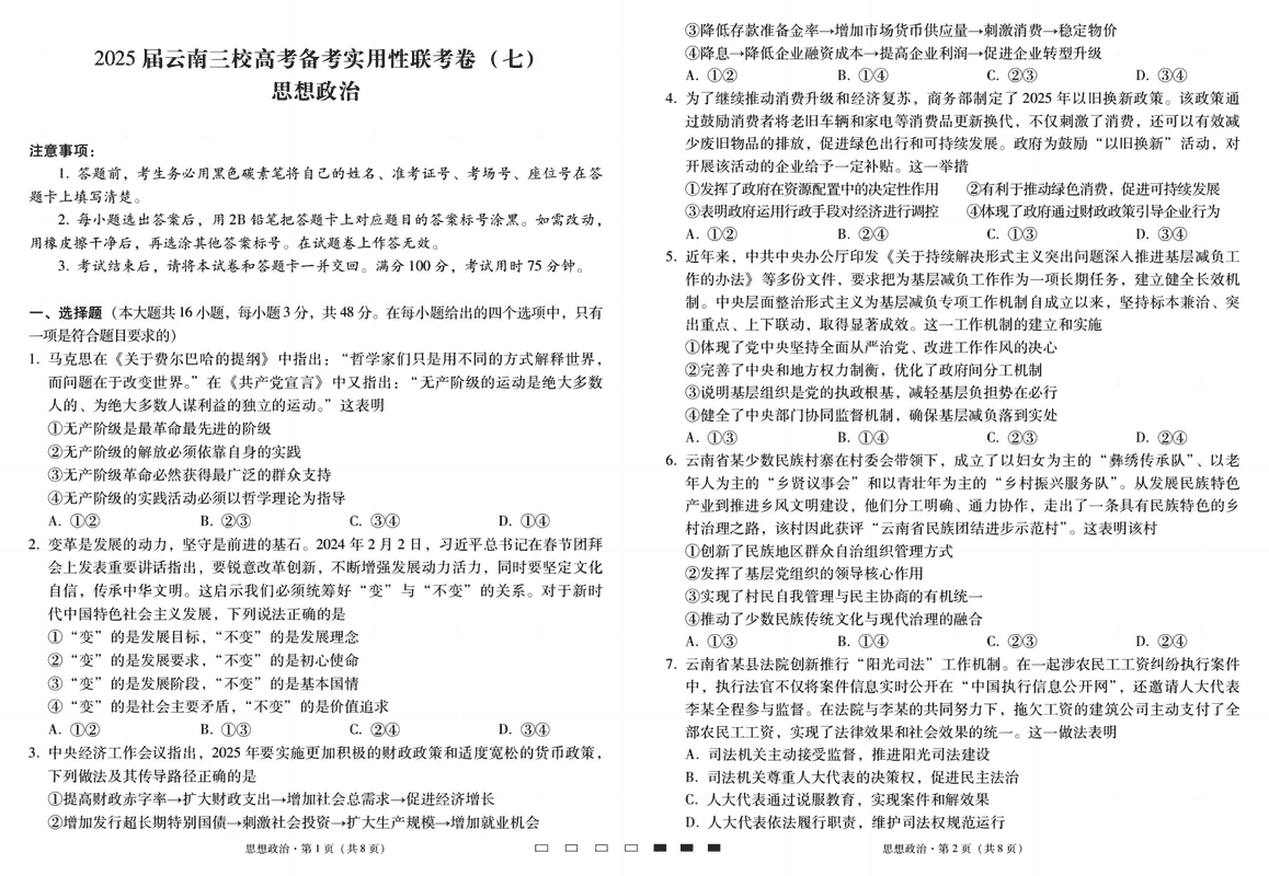 2025届云南三校高三高考备考实用性联考卷(七)政治试题及答案汇总