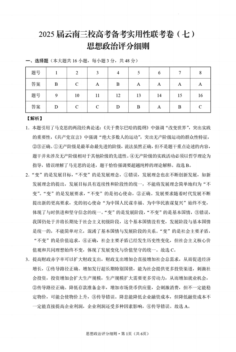 2025届云南三校高三高考备考实用性联考卷(七)政治考试已于近日开考,为方便考生考后及时查看考试情况,查漏补缺、弥补不足,本文整理了试题答案解析相关信息!