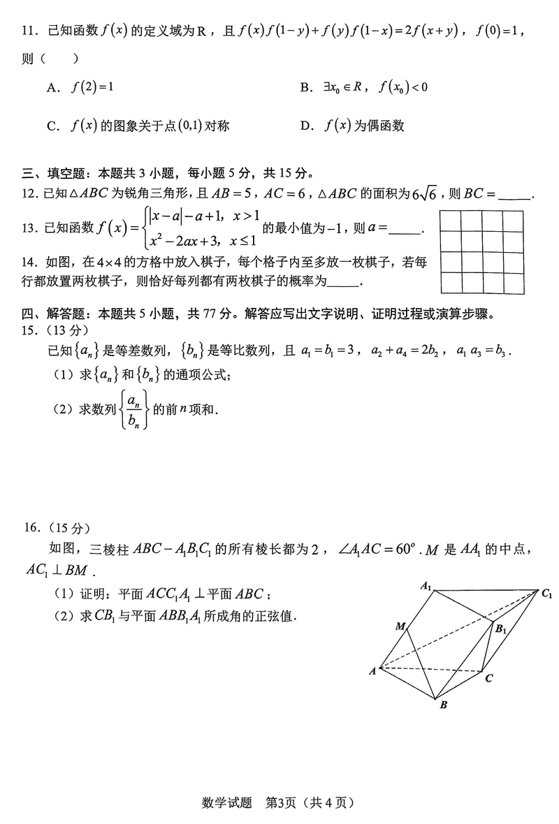 合肥二模2025届高三第二次教学质检数学试题及答案汇总