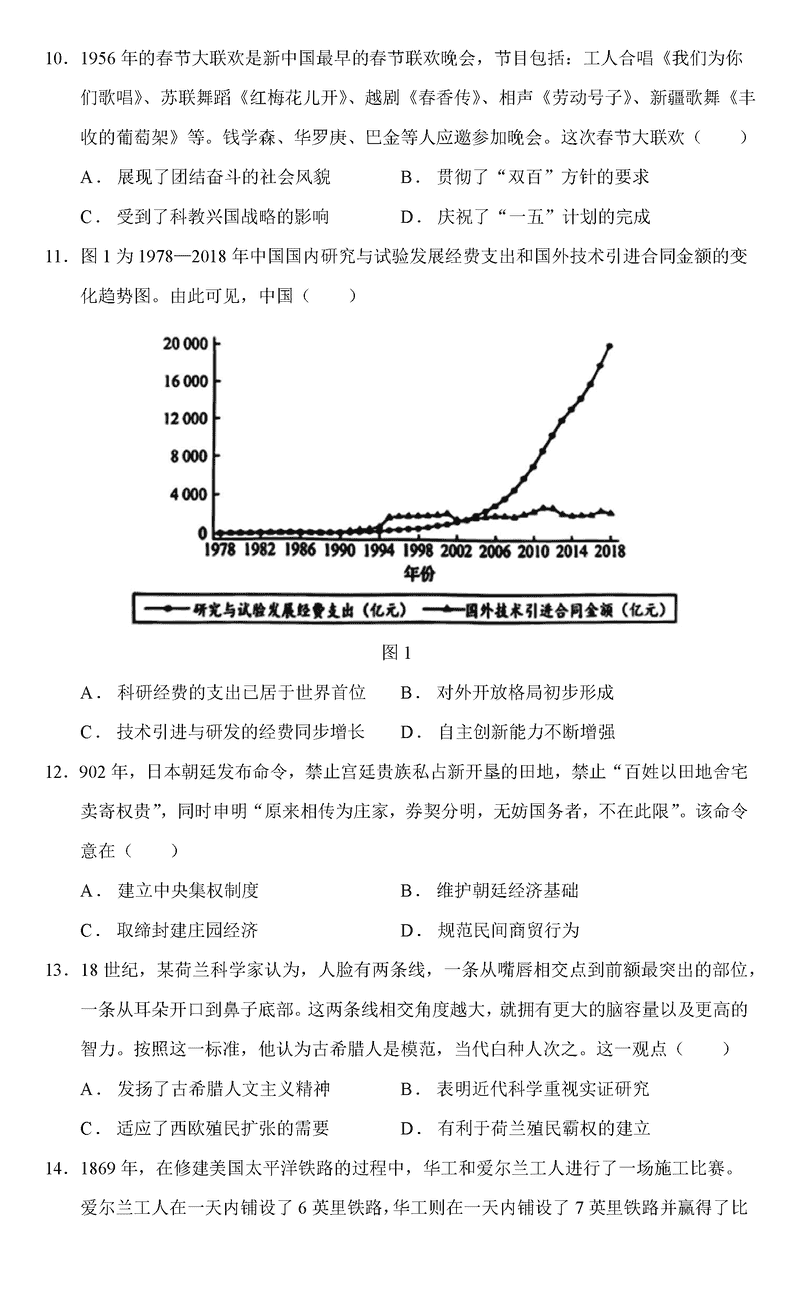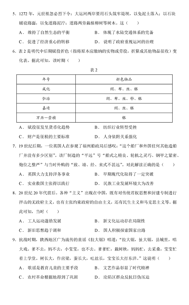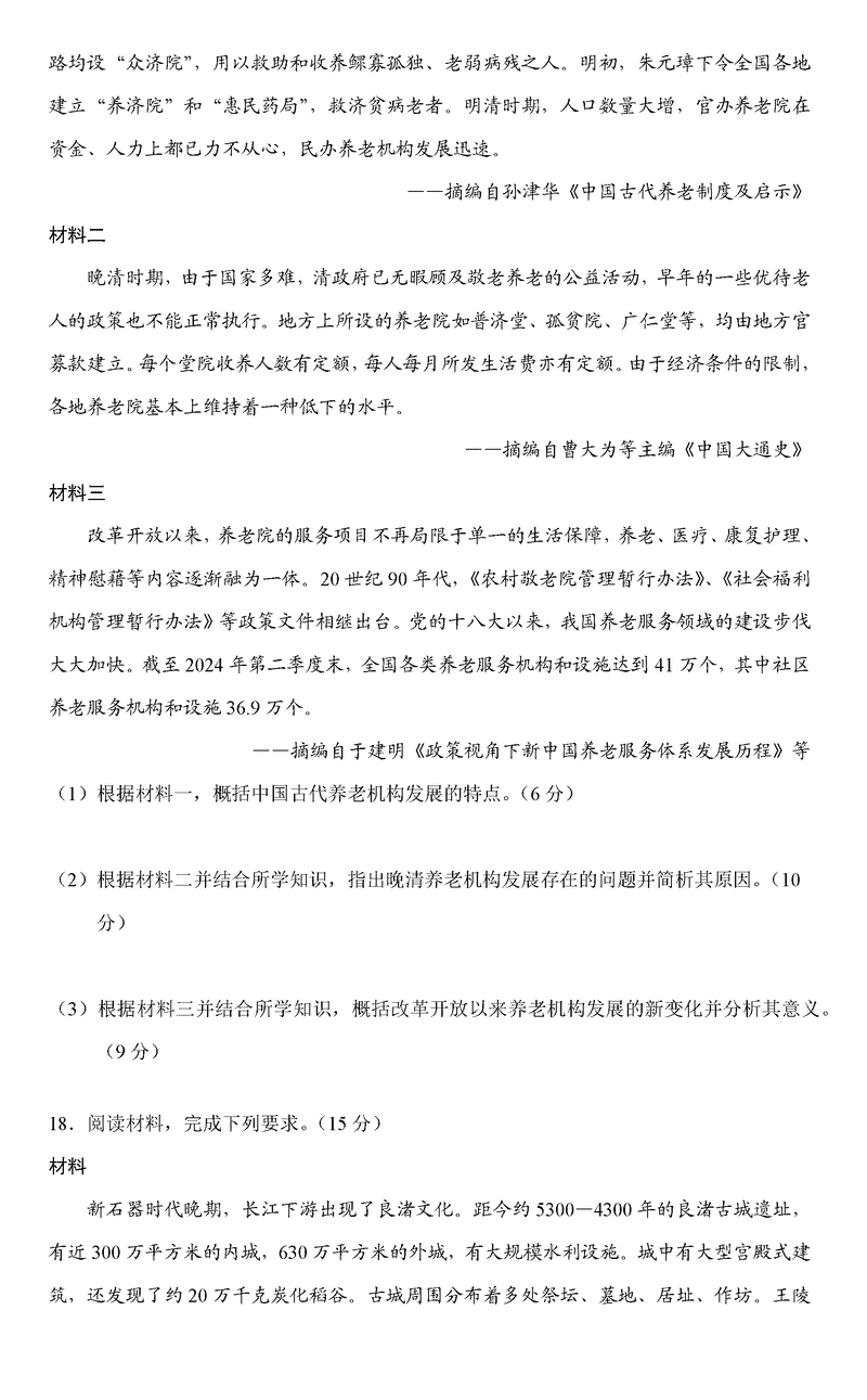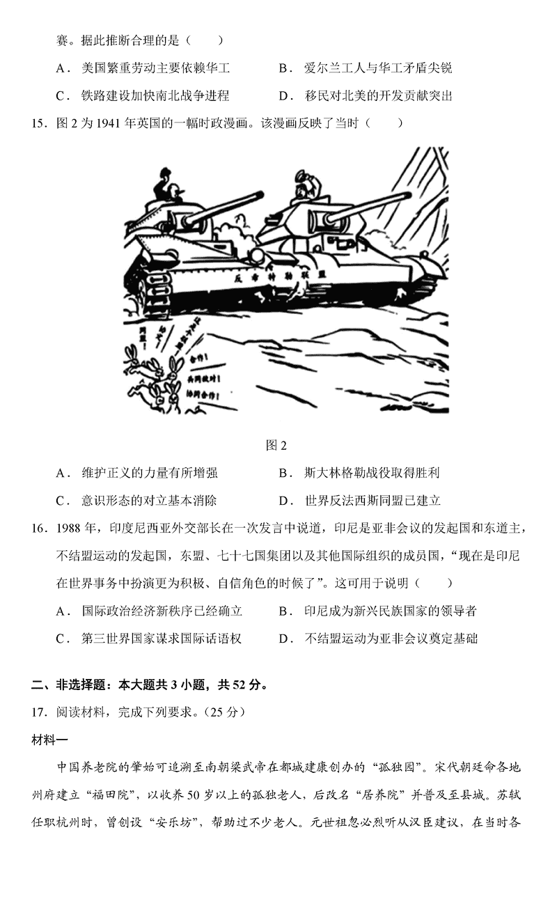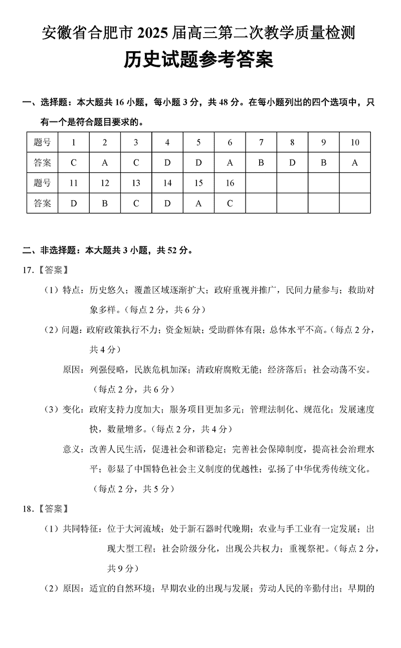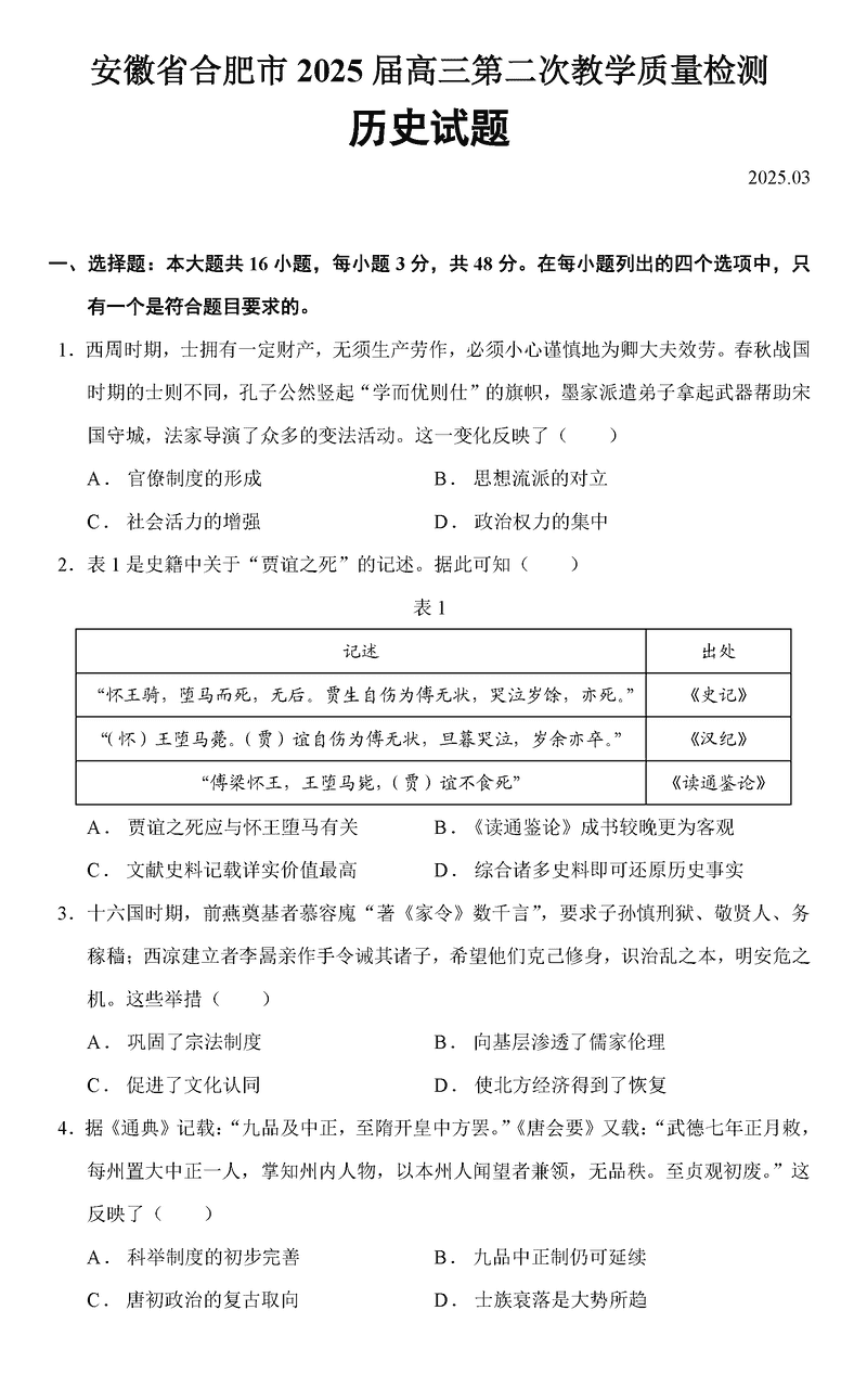 合肥二模2025届高三第二次教学质检历史试题及答案汇总