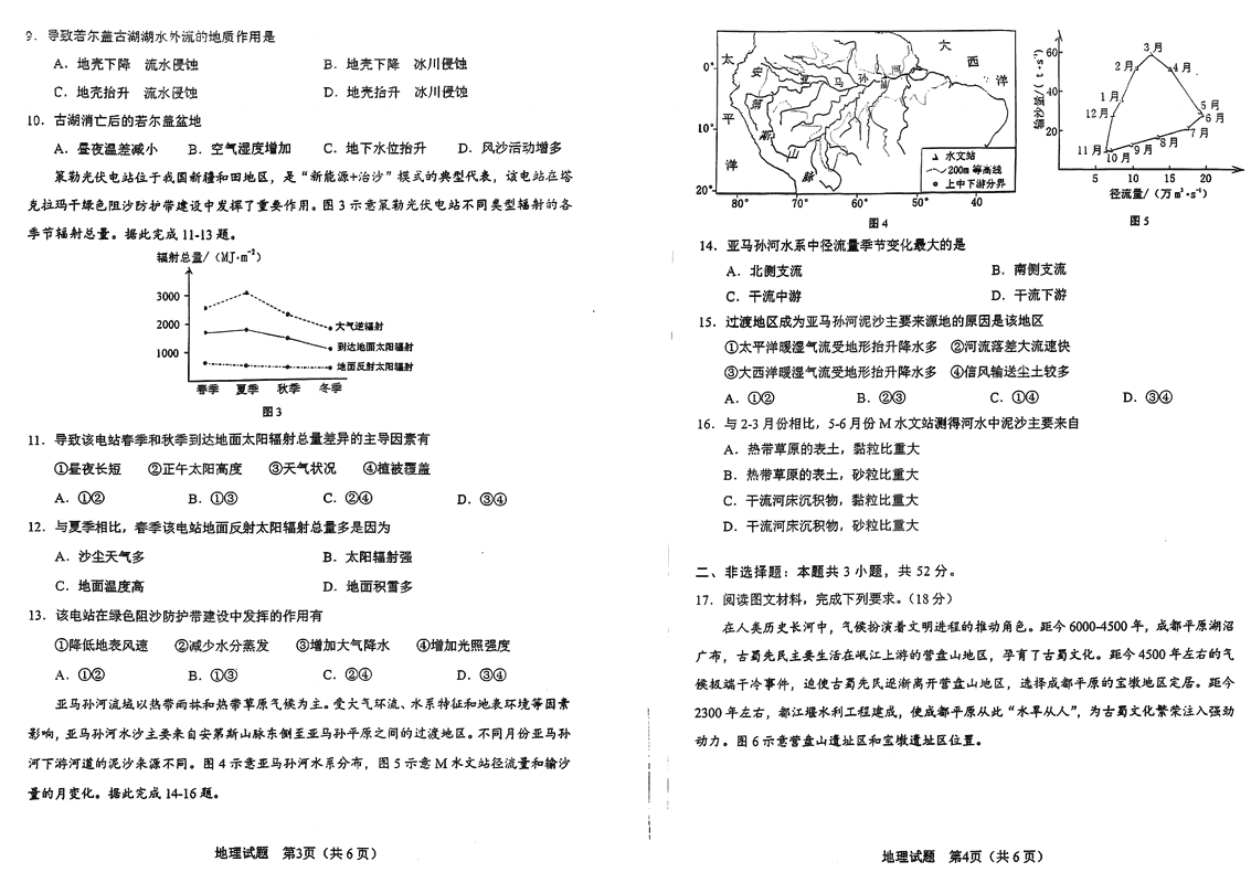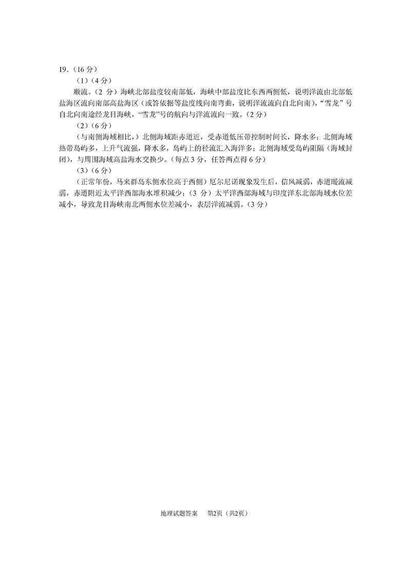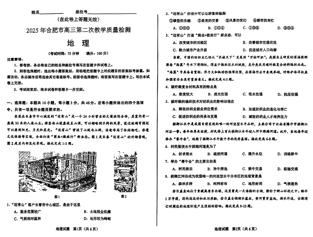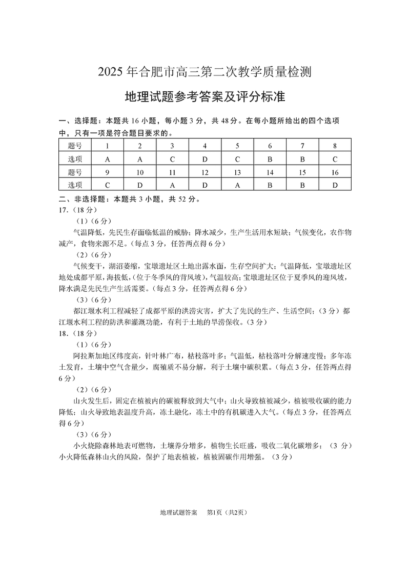 合肥二模2025届高三第二次教学质检地理试题及答案汇总