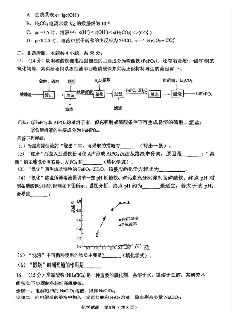 合肥二模2025届高三第二次教学质检化学试题及答案汇总