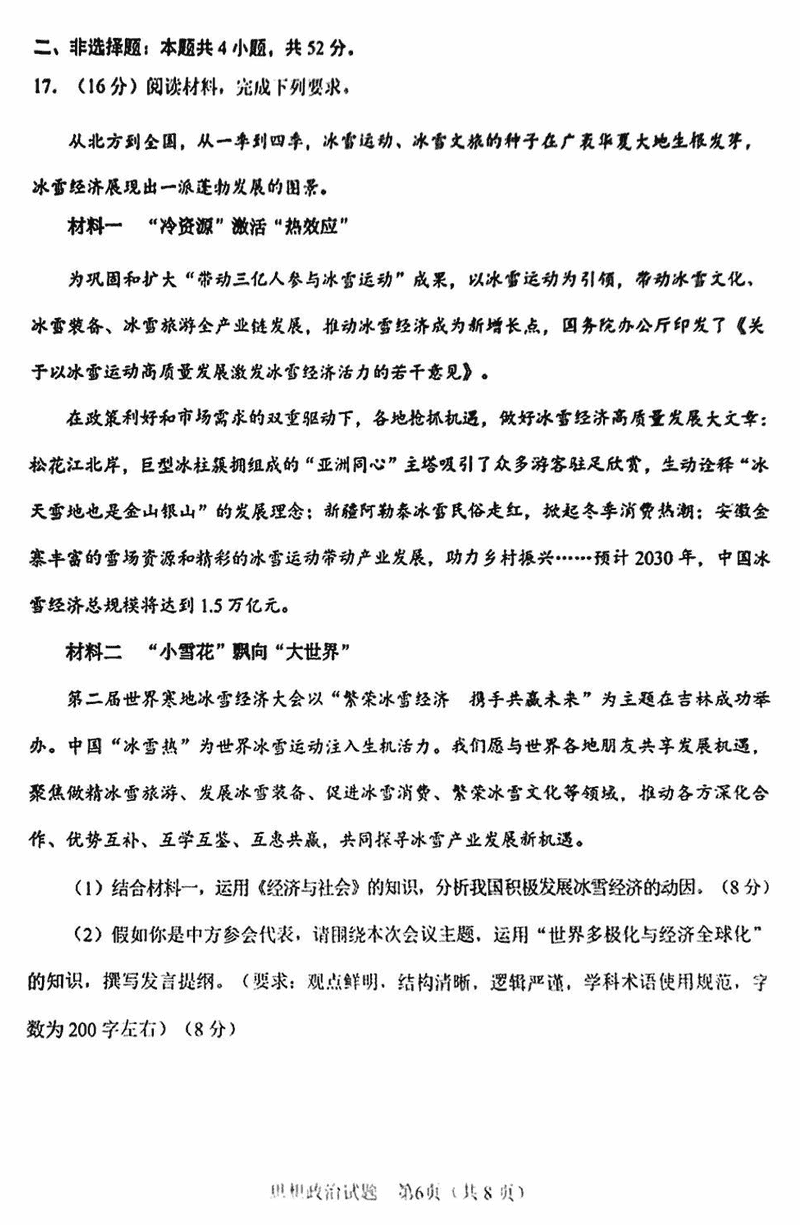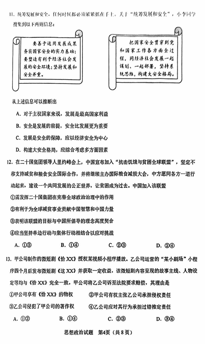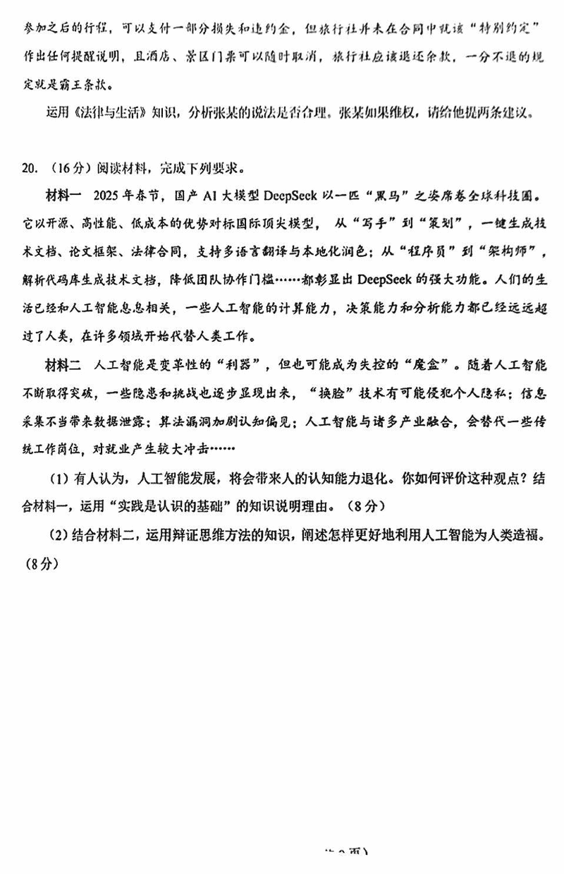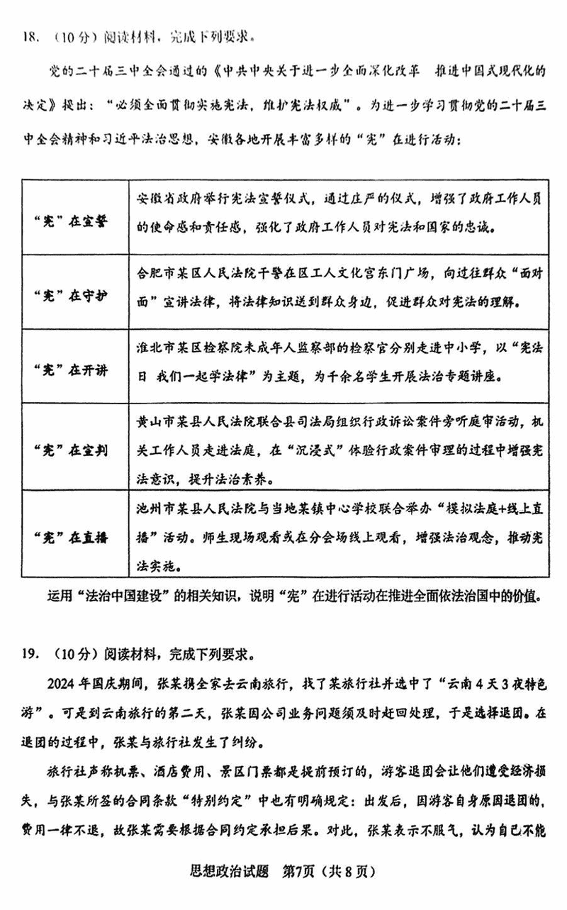 合肥二模2025届高三第二次教学质检政治试题及答案汇总