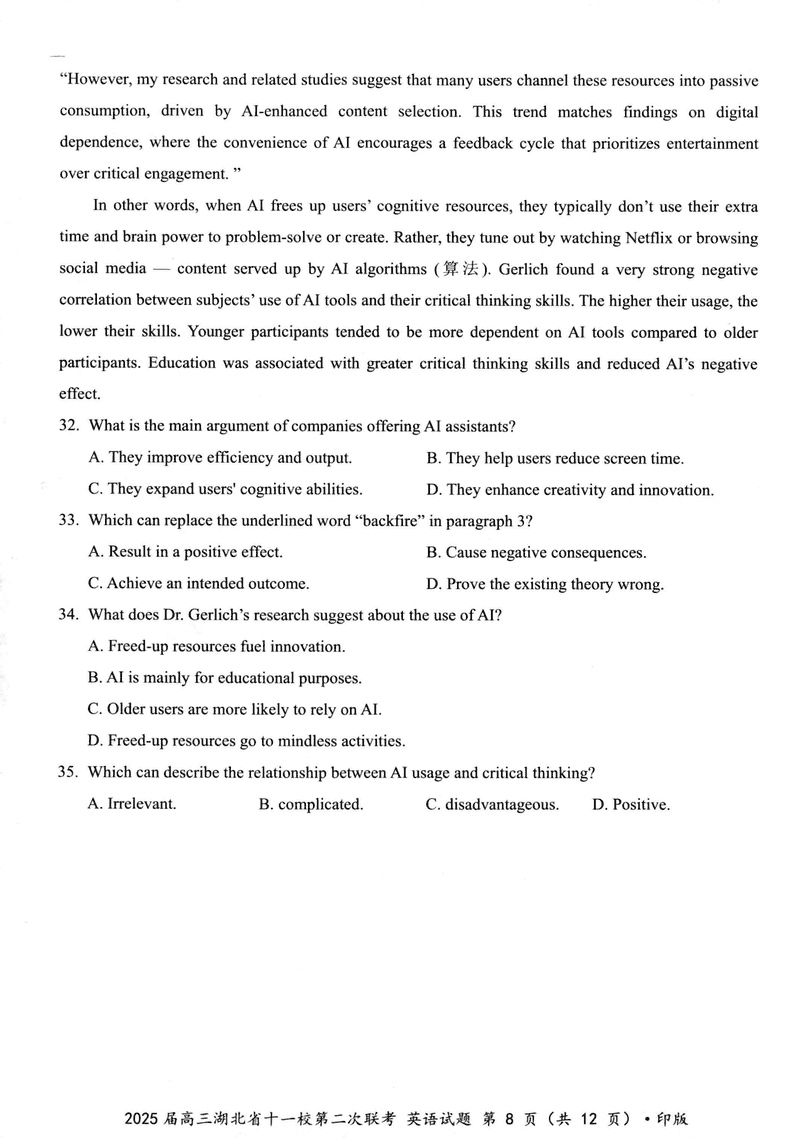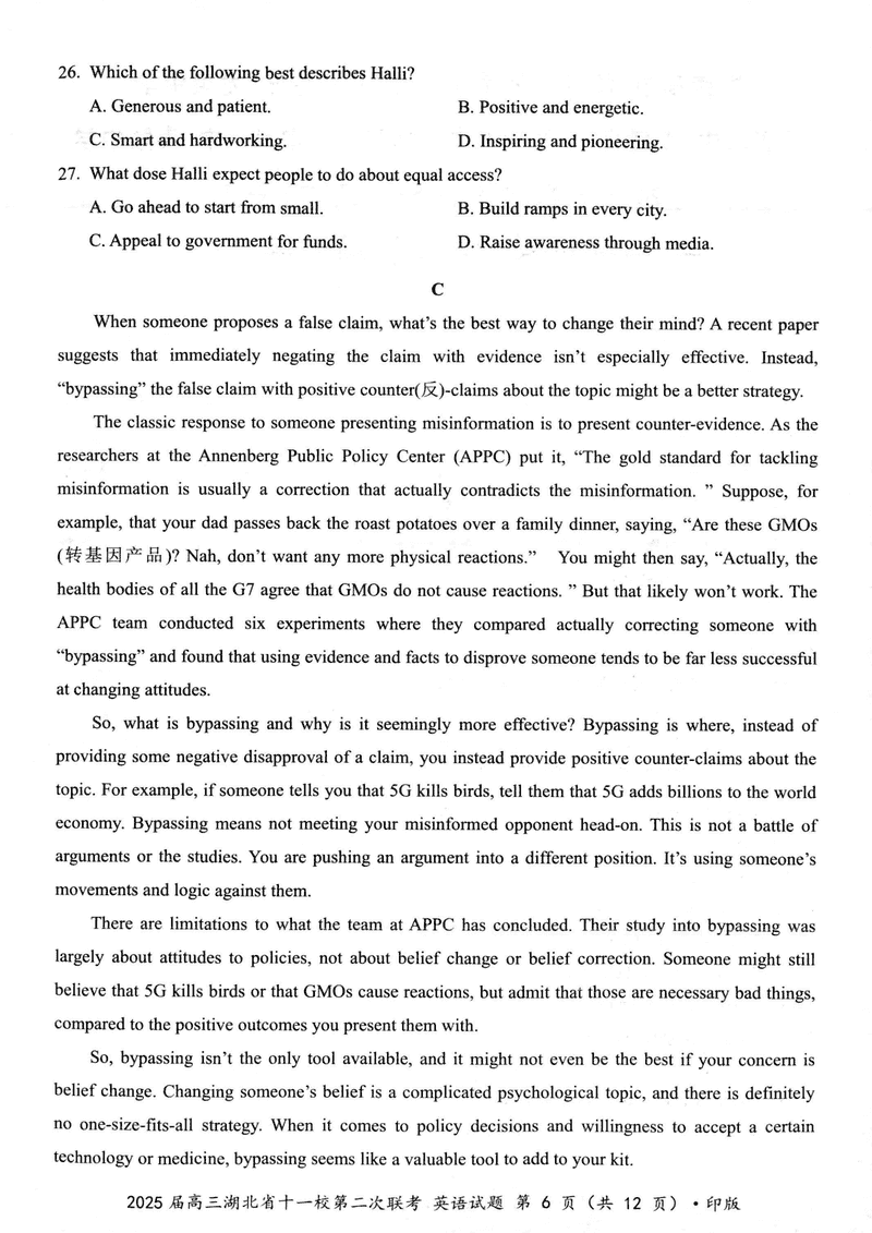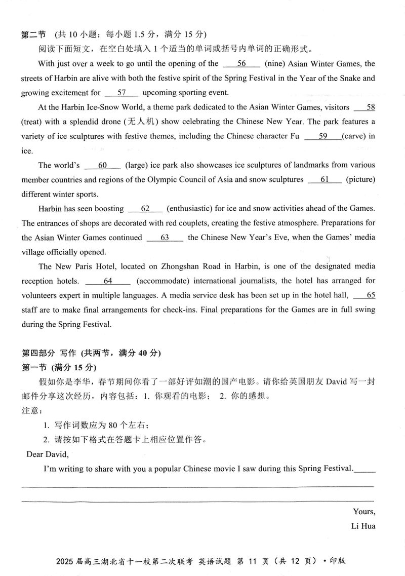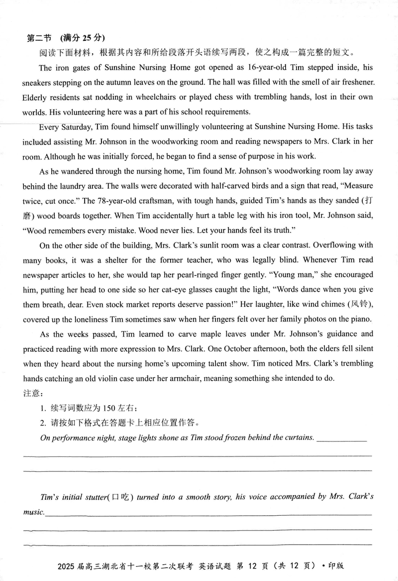 湖北省十一校2025届高三第二次联考英语试题及答案汇总 时间:2025-03-27 湖北 英语试题 湖北省十一校2025届高三第二次联考英语考试已于近日开考,为方便考生考后及时查看考试情况,查漏补缺、弥补不足,本文整理了试题答案解析相关信息! 汇总:湖北省十一校2025届高三第二次联考试题及答案汇总 英语试题及答案解析
