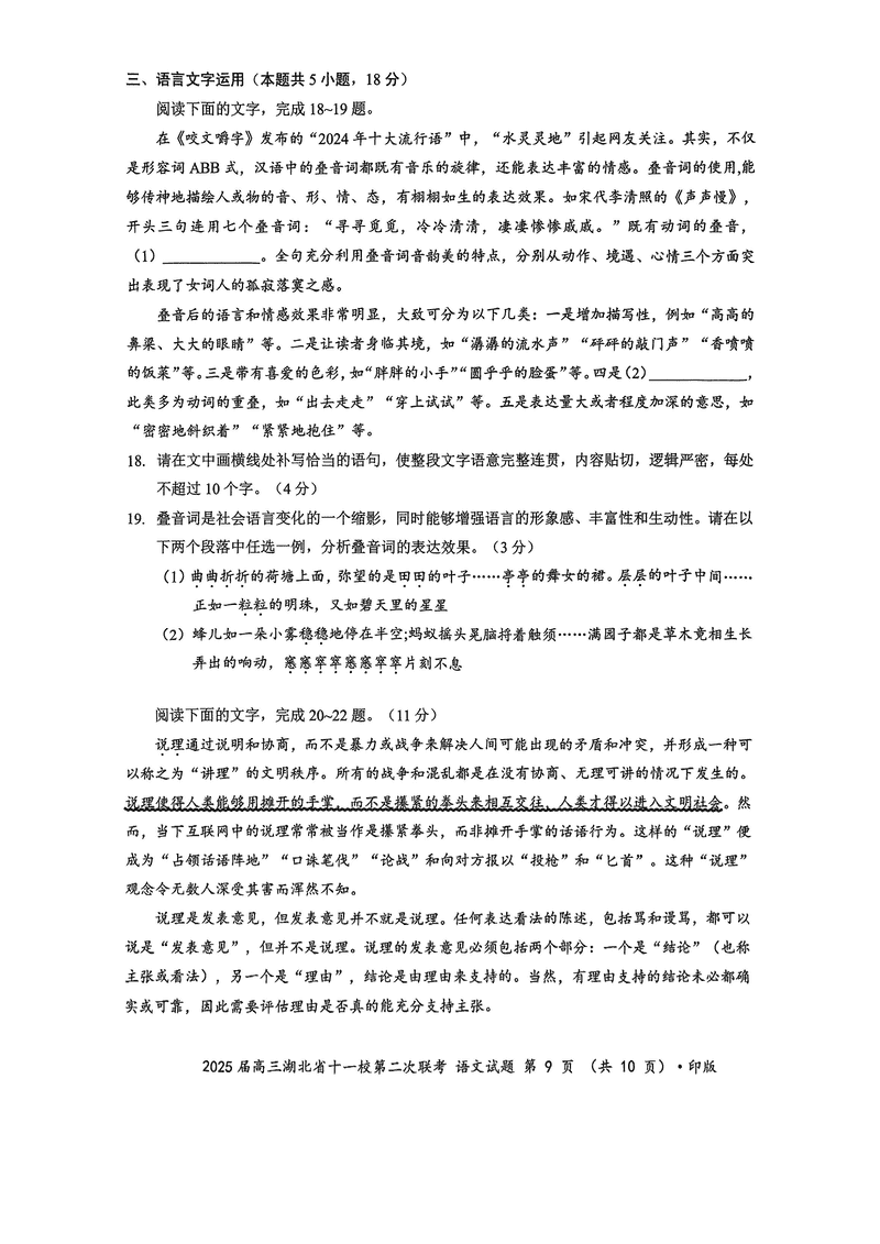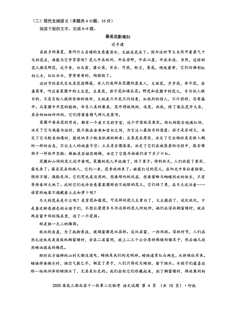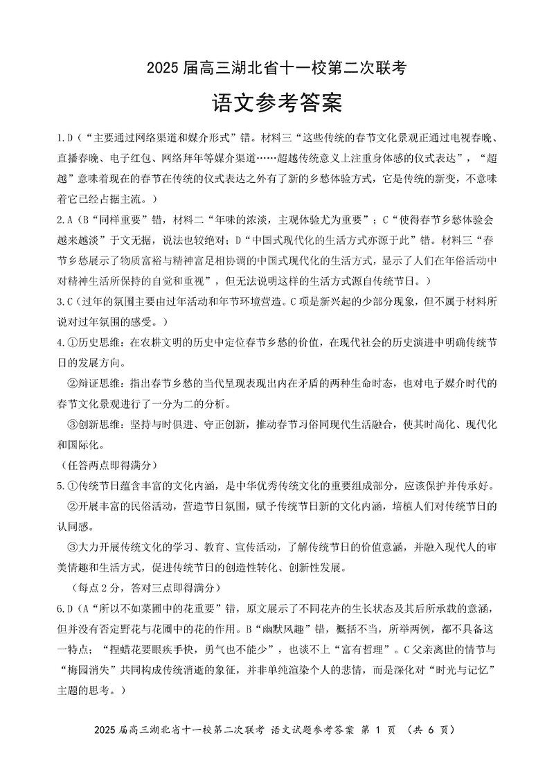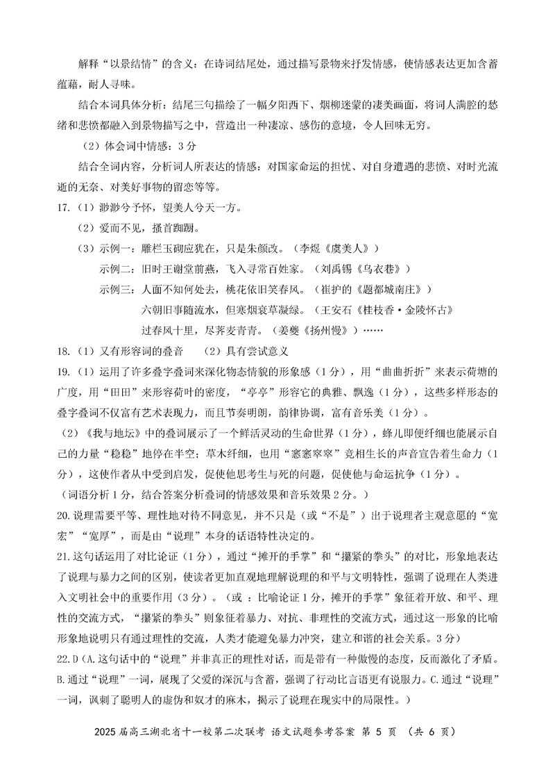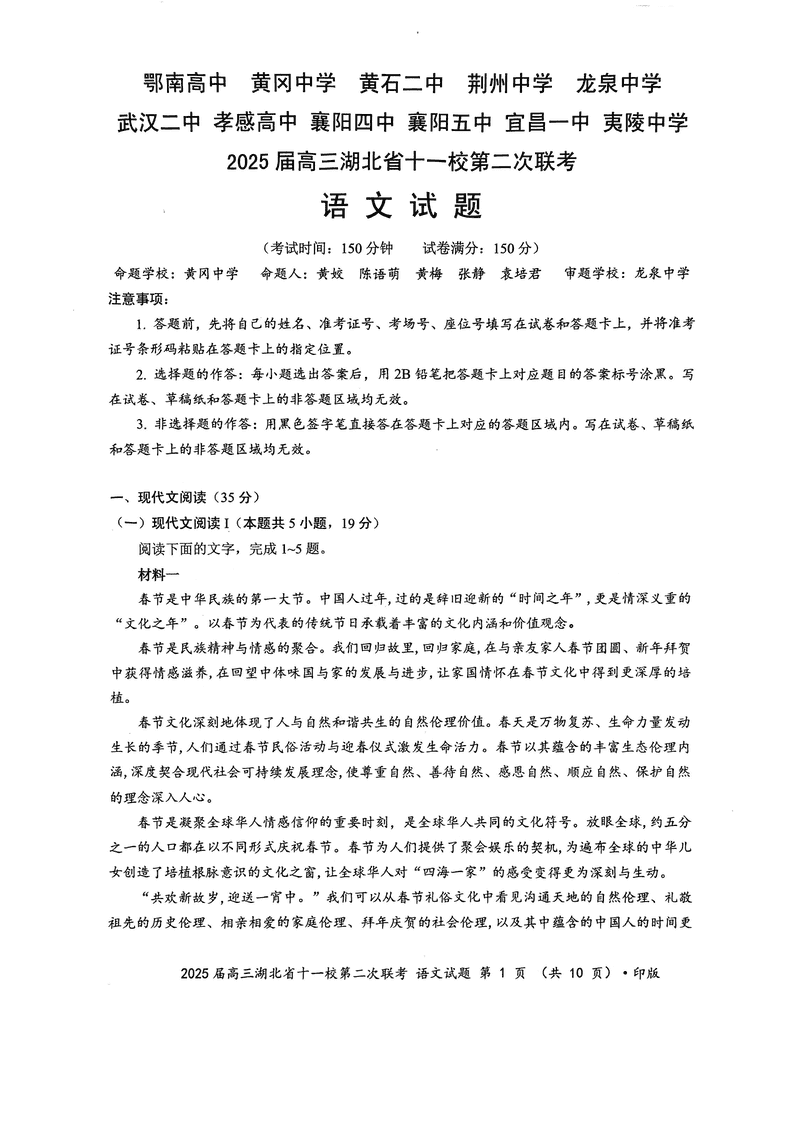 湖北省十一校2025届高三第二次联考语文试题及答案汇总 时间:2025-03-27 湖北 语文试题 湖北省十一校2025届高三第二次联考语文考试已于近日开考,为方便考生考后及时查看考试情况,查漏补缺、弥补不足,本文整理了试题答案解析相关信息! 汇总:湖北省十一校2025届高三第二次联考试题及答案汇总 语文试题及答案解析