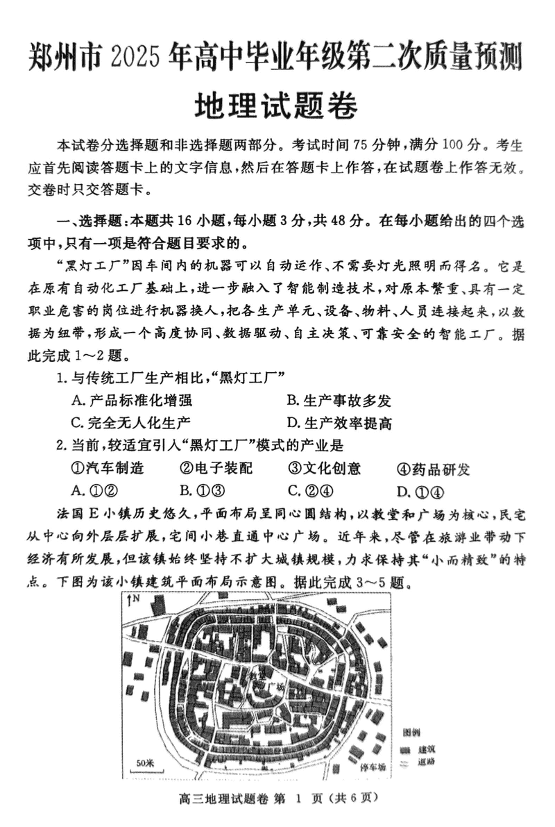郑州二模2025年高三第二次质量预测地理试题及答案 时间:2025-03-27 河南 文综试题 郑州二模2025年高三第二次质量预测地理考试已于近日开考,为方便考生考后及时查看考试情况,查漏补缺、弥补不足,本文整理了试题答案解析相关信息! 汇总:郑州二模2025年高三第二次质量预测试题及答案汇总 地理试题及答案解析