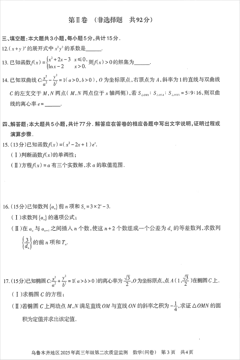 乌鲁木齐2025年高三第二次质量监测数学试题及答案汇总 时间:2025-03-27 新疆 数学试题 乌鲁木齐2025年高三第二次质量监测数学考试已于近日开考,为方便考生考后及时查看考试情况,查漏补缺、弥补不足,本文整理了试题答案解析相关信息! 汇总:乌鲁木齐2025年高三第二次质量监测试题及答案汇总 数学试题及答案解析