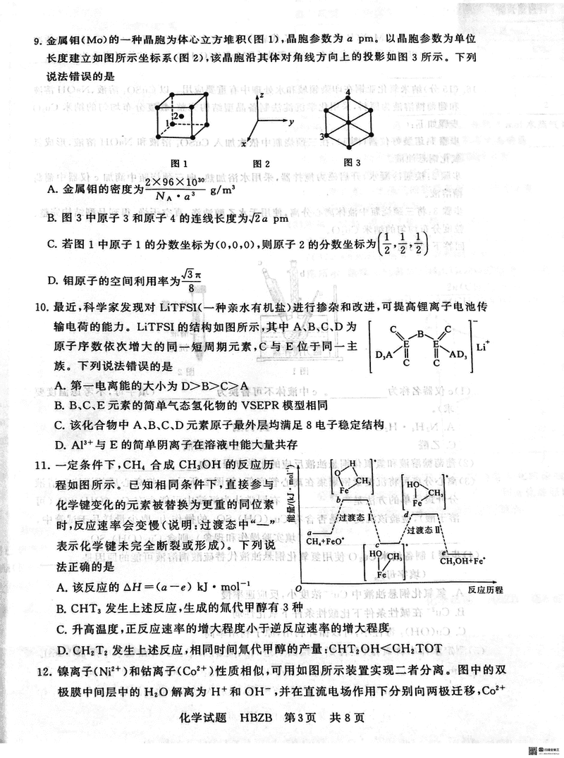 2025届八省八校T8联考高三3月联合测评化学(河北版)考试已于近日开考,为方便考生考后及时查看考试情况,查漏补缺、弥补不足,本文整理了试题答案解析相关信息!