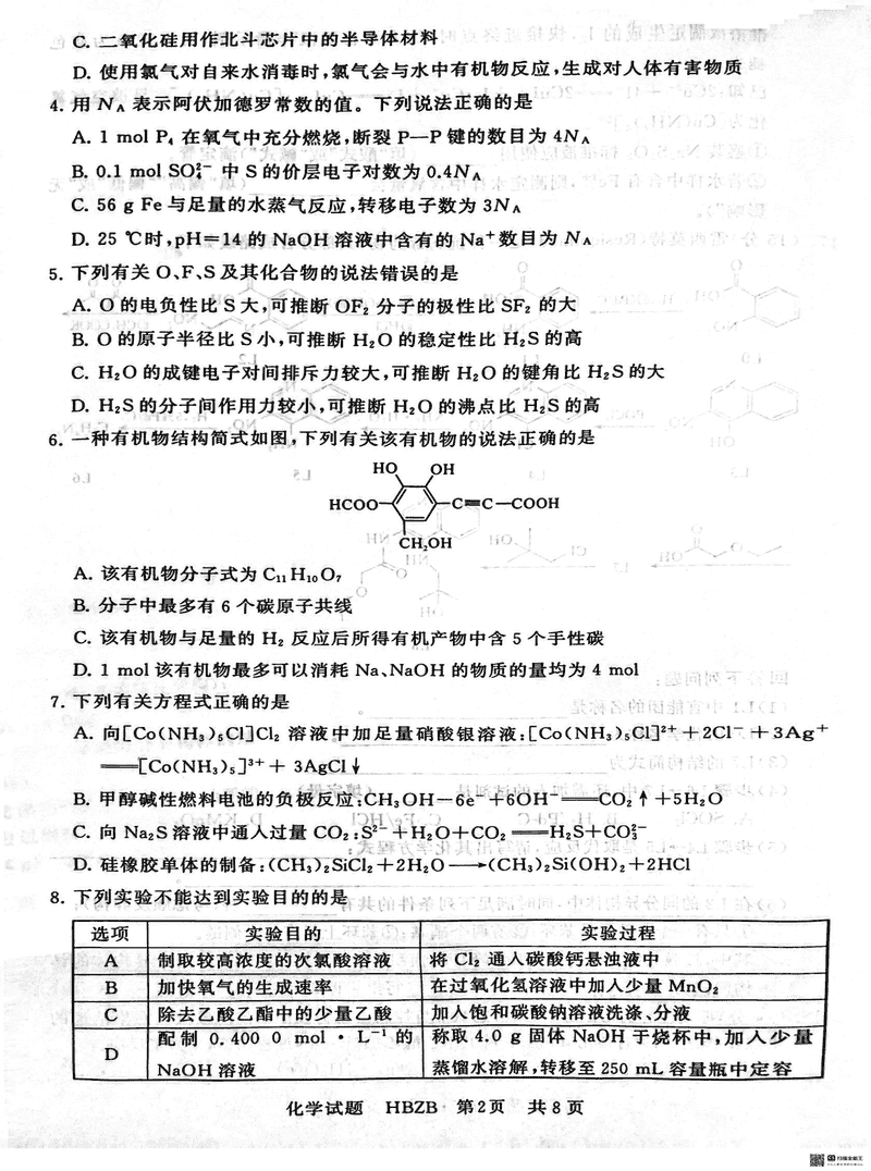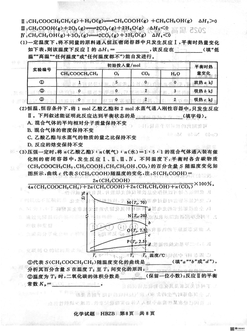 2025届八省八校T8联考高三3月联合测评化学(河北版)试题及答案汇总